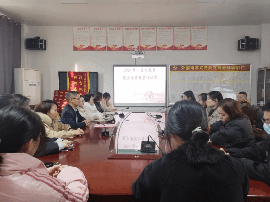 会议第三项,全体员工党员签订就业承诺书,承诺带头就业,积极带动同学就业。