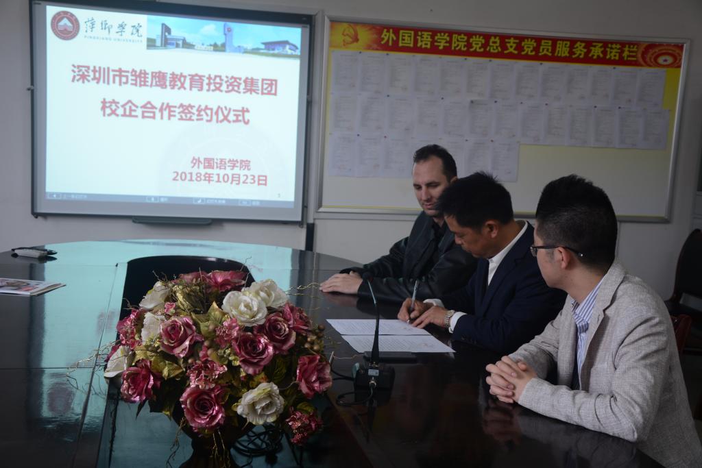 2018年10月23日下午,beats365亚洲版官网与深圳市雏鹰教育投资集团校企合作暨实习基地签约仪式在英华楼3319举行。公司党总支书记黄柏萍、副书记刘佳萍、党政办公室主任曾德清参加了签约仪式。