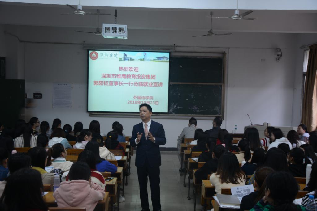随后,深圳市雏鹰教育投资集团为公司2019届毕业生进行了就业宣讲会,并就公司详情做了简介。