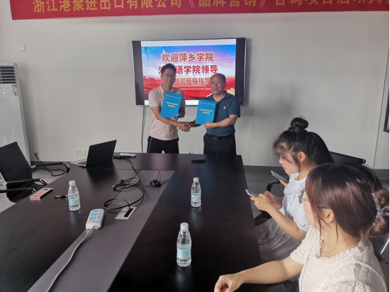 8月2日上午,黄书记一行来到金华市浦江县,看望在浙江奥美伽公司打暑假工的同学们以及在该公司工作的员工。利用同学们中午的空闲时间,黄书记、王老师与员工代表进行了座谈,了解了同学们的工作、生活情况,提醒同学们注意劳逸结合,务必确保每天的休息时间。2号下午,烈日当空,骄阳似火,但两位老师不敢有半分懈怠,开完座谈会就赶往浙江港聚进出口有限公司。港聚的黄经理介绍了公司发展情况和人才需求,陪同黄书记、王老师参观了企业的生产线、销售部,在此工作的三位毕业生勤奋好学,工作上手比较快。黄书记代表学校与港聚公司签订了就业基地合作协议。