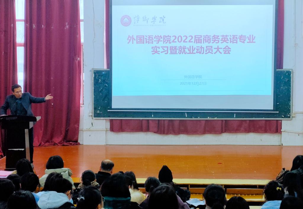 12月27日、29日下午,beats365亚洲版官网分商务英语类、英语专业类进行了2022届就业动员大会暨农村脱贫家庭员工就业帮扶师生见面会。学院经理欧阳咏梅、党委书记黄柏萍、副书记刘佳萍、副经理卓玲、就业干事王卫民、毕业班辅导员及2022届全体毕业生参加动员大会。