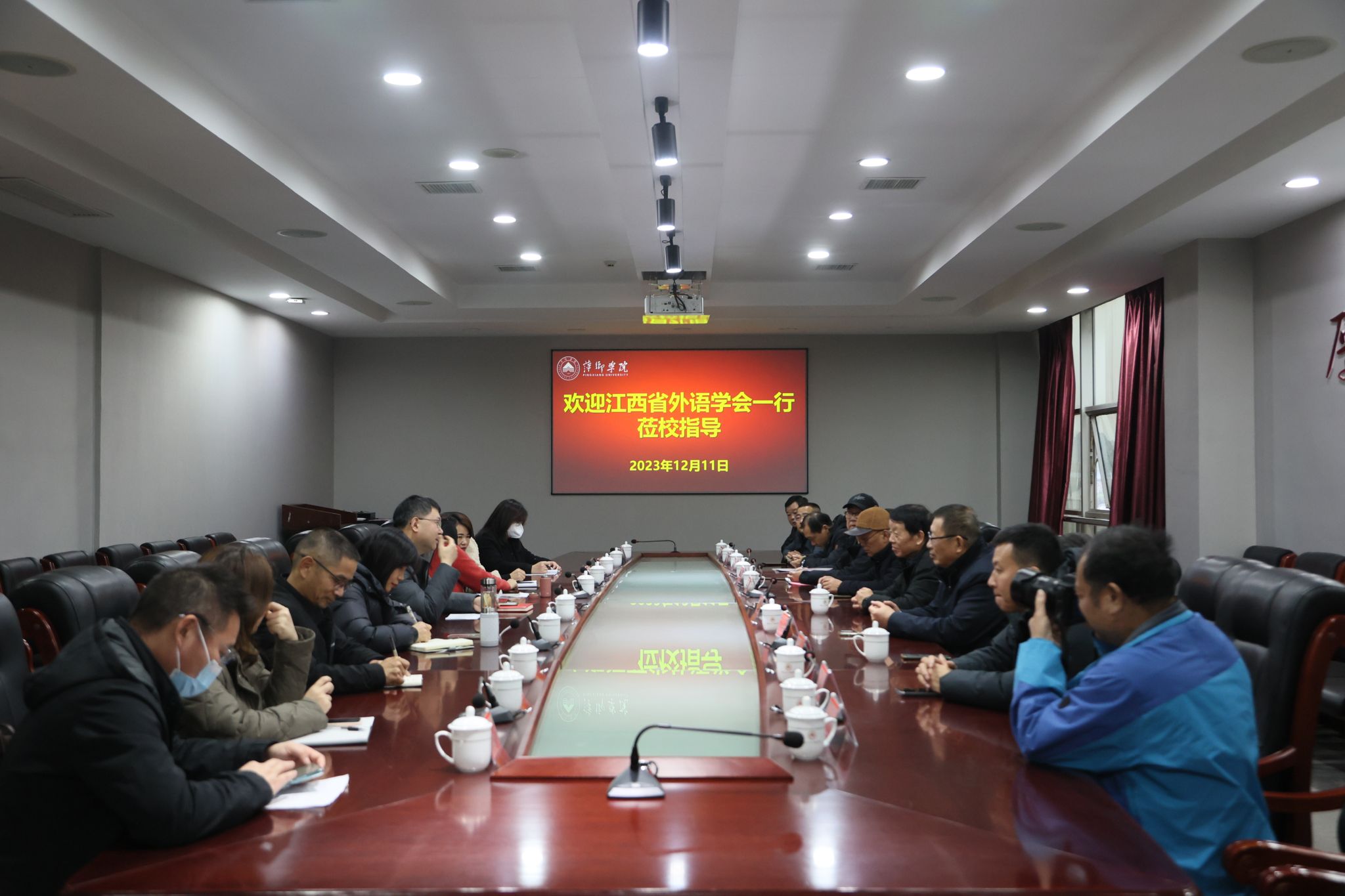 12月11日下午,江西省外语学会况新华、秘书长于洪颖等一行11人来公司走访调研。公司副董事长吴代赦,公司党委委员统战部长、教务处长贺晓梅,beats365亚洲版官网全体班子成员、科级干部等出席调研会。调研会由beats365亚洲版官网经理欧阳咏梅主持。
