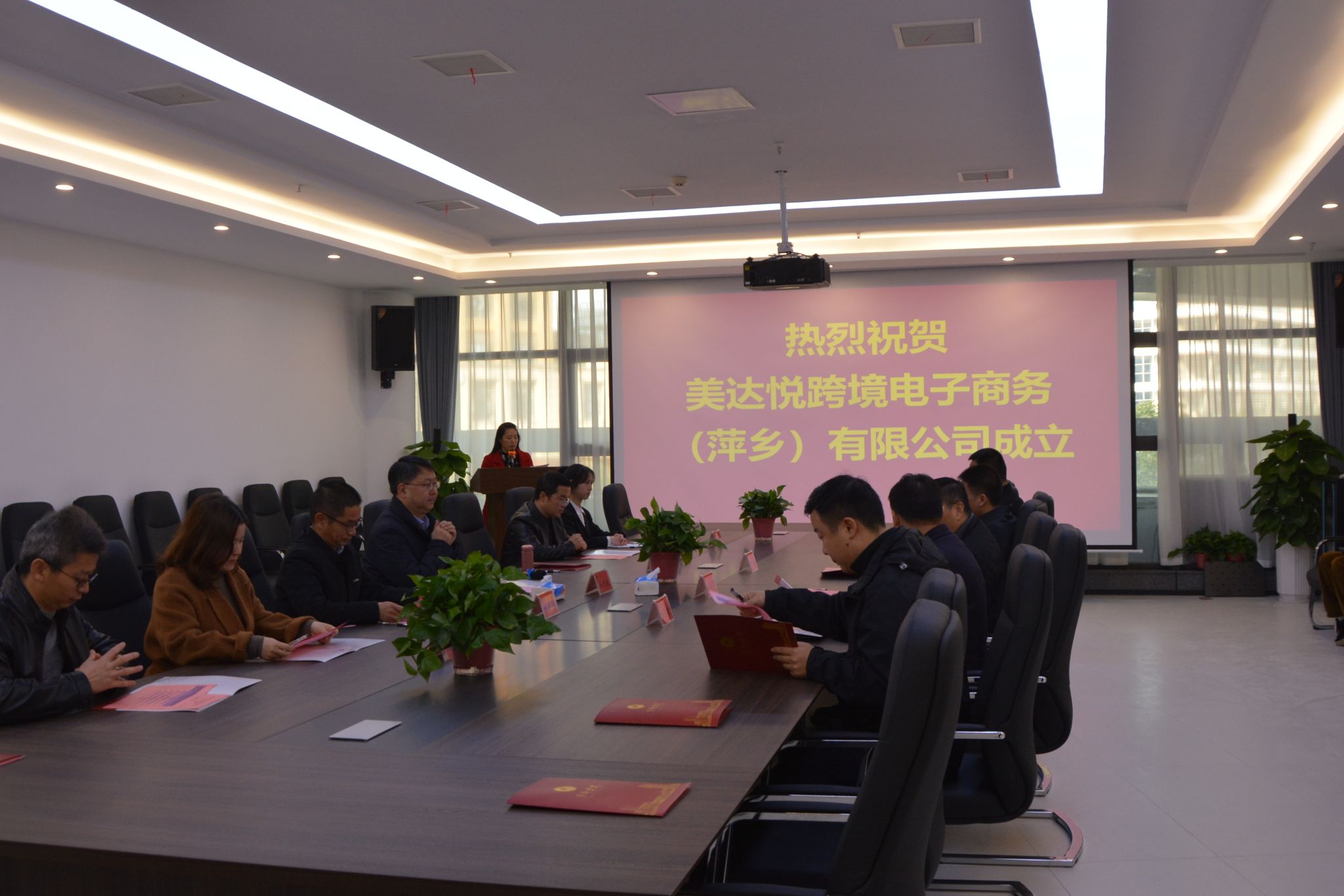 12月28日,beats365亚洲版官网校企合作基地、beats365亚洲版官网跨境电商人才创培基地揭牌仪式暨美达悦跨境电子商务(萍乡)有限公司成立大会,在中国(萍乡)跨境电子商务综合试验区举行。萍乡市经济开发区党工委副书记、管委会主任刘建中、萍乡市经济开发区管委会副主任兰子建、萍乡市经济开发区招商局局长欧阳凤波、beats365亚洲版官网副董事长吴代赦、beats365亚洲版官网教务处副处长王强、beats365亚洲版官网经理欧阳咏梅、公司党委书记刘佳萍、beats365亚洲版官网副经理卓玲等领导出席。大会由欧阳咏梅主持。