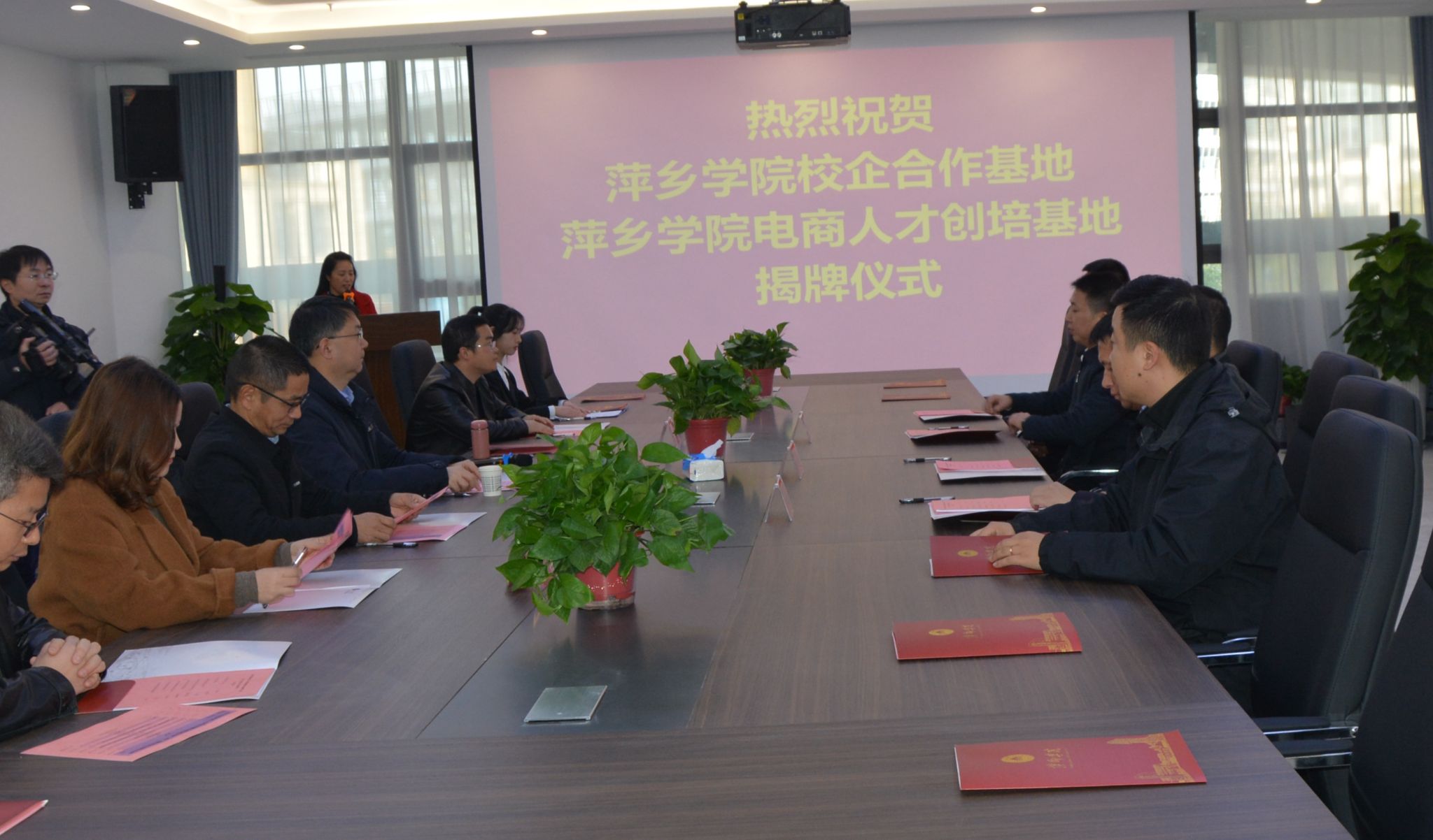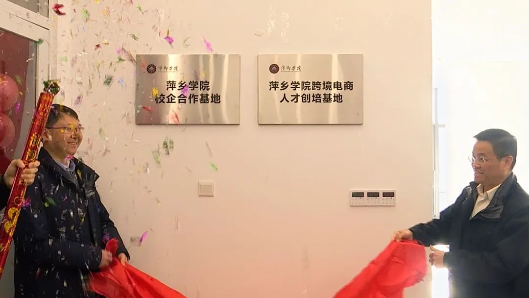 刘建中、吴代赦共同为beats365亚洲版官网校企合作基地、beats365亚洲版官网跨境电商人才创培基地、美达悦跨境电子商务(萍乡)有限公司揭牌。