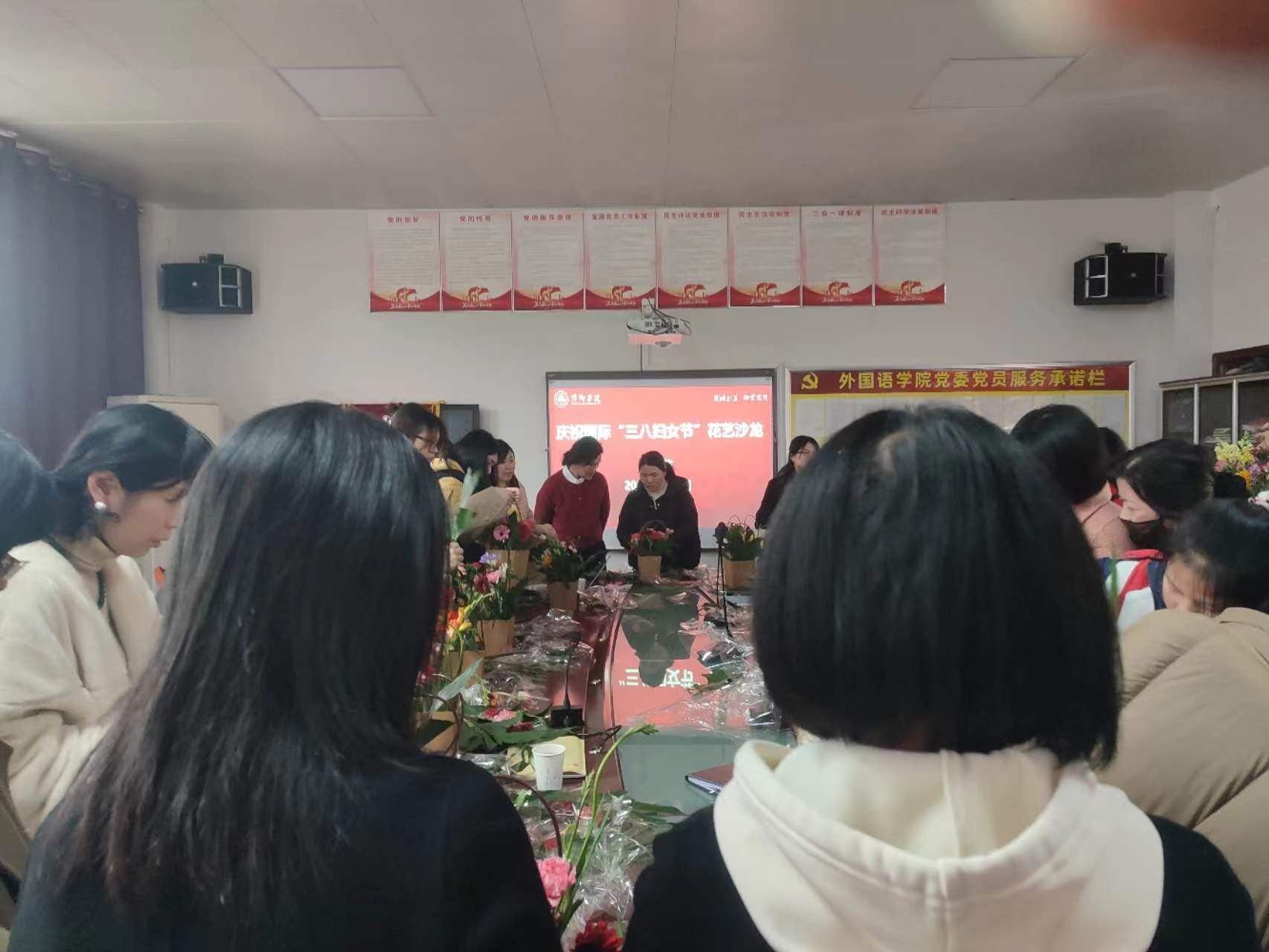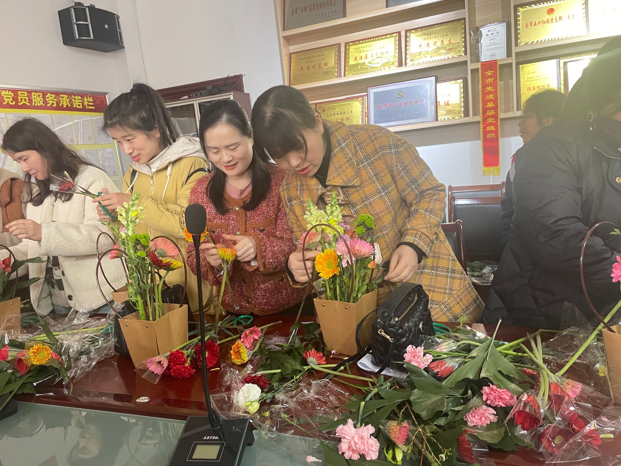 活动期间,花艺老师带领女老师们认识不同种类的花的学名,详细讲解了花材选择和插花技巧。大家在花艺老师的讲解下开始了“沉浸式”插花,用巧手和智慧,享受插花艺术的魅力和花艺带来的幸福。