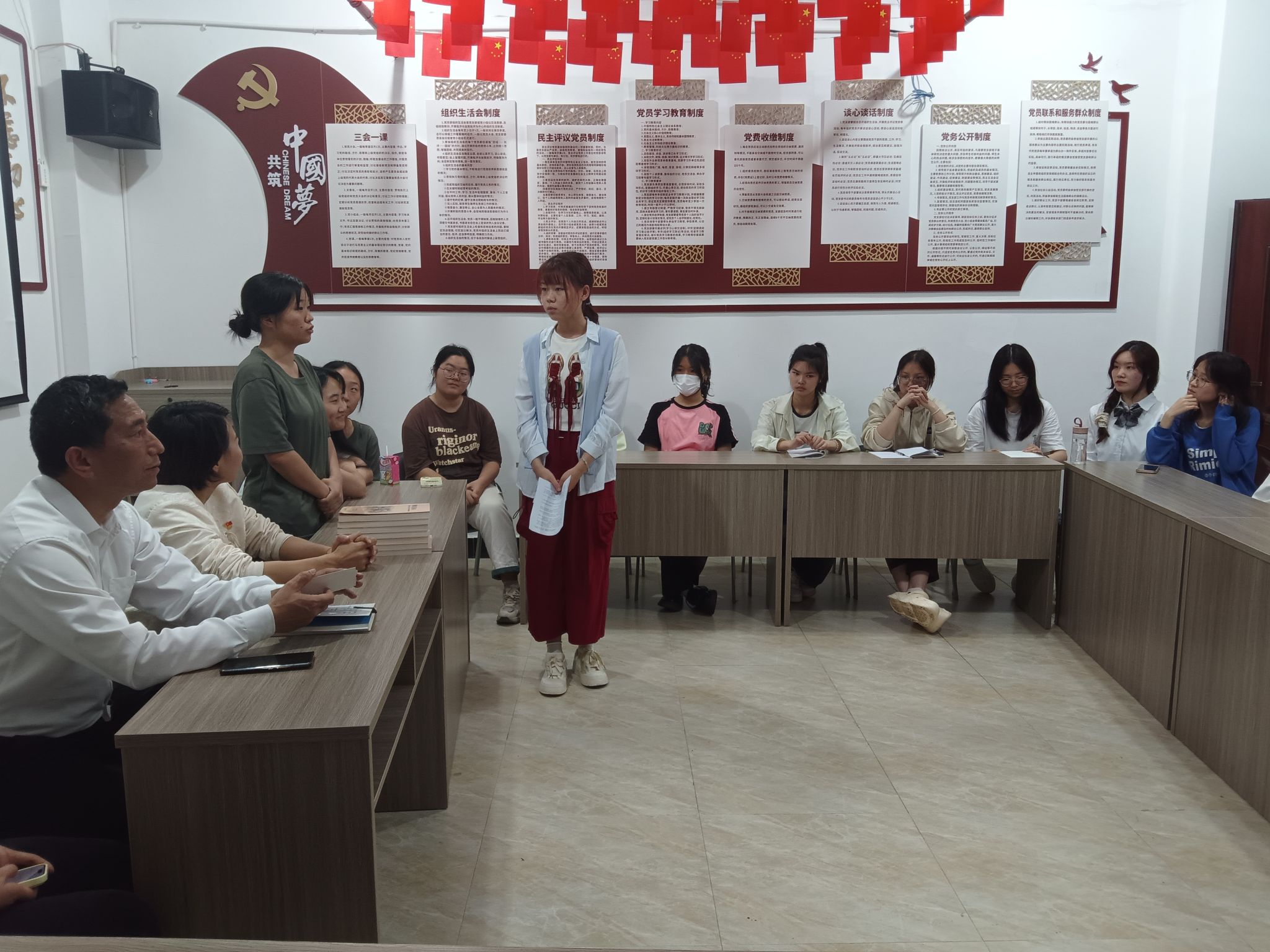 第二个环节是回首峥嵘岁月,讲述英烈故事。曹金萍书记首先介绍了江西省丰富的红色资源,接下来向同学们讲述了红色书籍《回望峥嵘读初心》一书中理想信念篇里莲花君子刘仁堪用脚蘸鲜血写下“革命成功万岁”感人故事,从中感受到革命先辈们为了高尚的理想信念勇于献身的崇高精神。接着曹书记结合当下正在进行的党纪学习教育,向大家讲述了书中纪律规矩篇“南瓜藤上长出银毫子——‘小菜王’的意外发现”的故事,故事体现了共产党人严守纪律,不拿群众的一针一线的高尚品德。最后曹书记鼓励大家养成爱读书、读好书,善读书,从书中获取智慧和力量。通过曹书记分享的这两个故事,我们对发生在江西红土地上的革命故事有了更深刻的了解,获得了奋发有为强大的精神力量。
