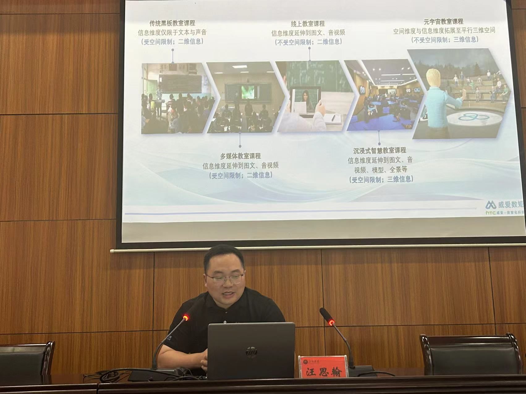 威爱科技集团副总裁汪思翰基于信息技术的迅速发展,高校外语教育面临新的挑战与机遇,进行了以“GPT大模型与元宇宙技术助力高效外语教育数字化转型”为主题的发言,讨论了基于GPT大模型技术语言宇宙相关技术,如包括VR、AR、MR、虚拟仿真等,构建外语教学实训及实践的一体化数字化应用模式,为人才培养、语言服务及科研工作提供强有力的新理论、新方法、新工具。