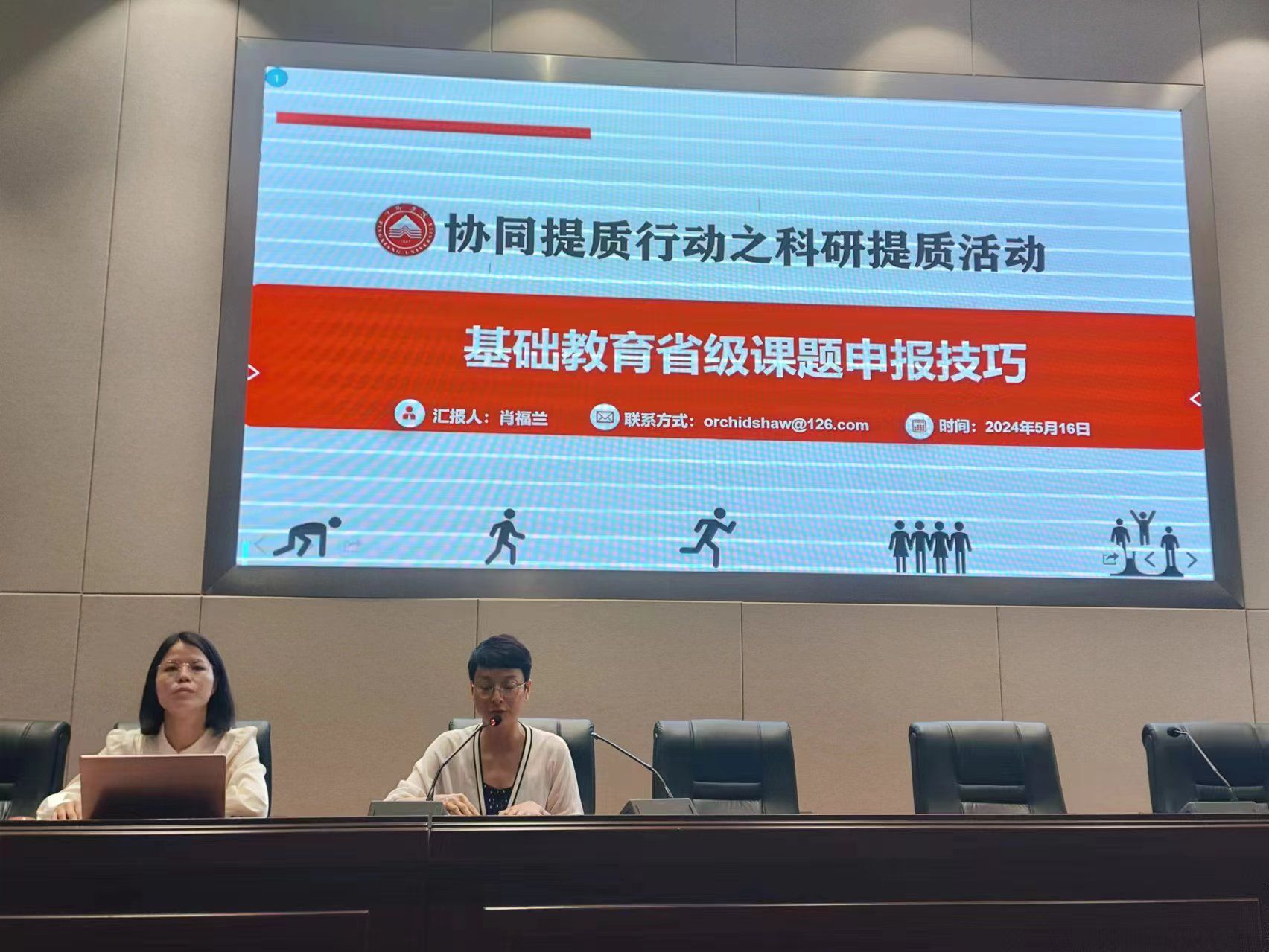 此行主要目的是为了进一步提升湘东中学外语教师科研能力,助力该校科研质量而开展的科研讲座活动。讲座由湘东中学教务处主任杜秋梅主持,beats365亚洲版官网副教授肖福兰进行了主题为“基础教育省级课题申报技巧”的专题讲座,湘东中学英语教研组全体教师参与了此次活动。