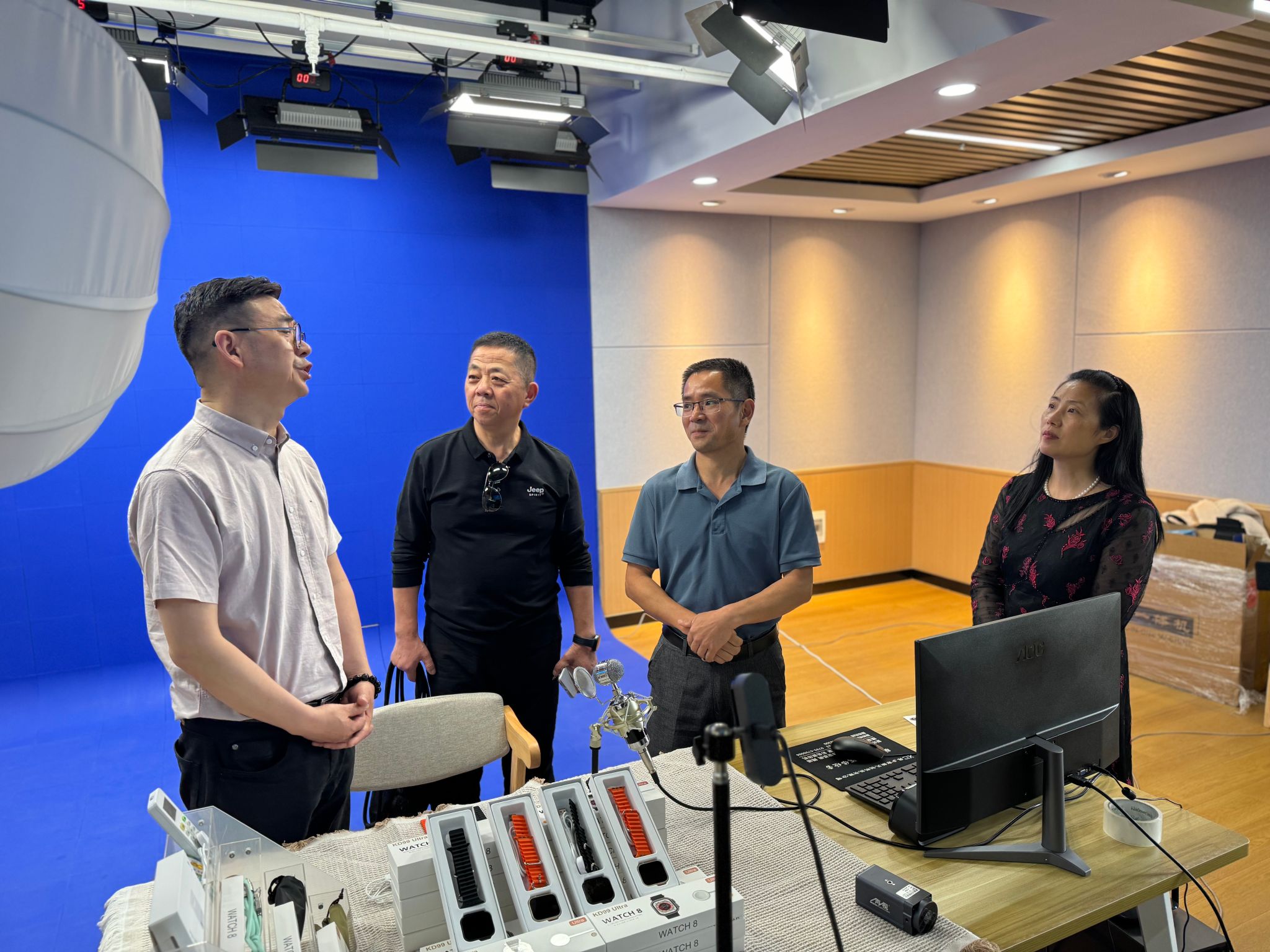 5月15日上午,武汉纺织大学外经贸学院资产与实验室管理处处长卢会军、现代商务学部主任徐声星、国贸实验室负责人赵杨旸一行3人前来公司考察交流,同行的还有北京学研汇智网络科技有限公司技术人员。