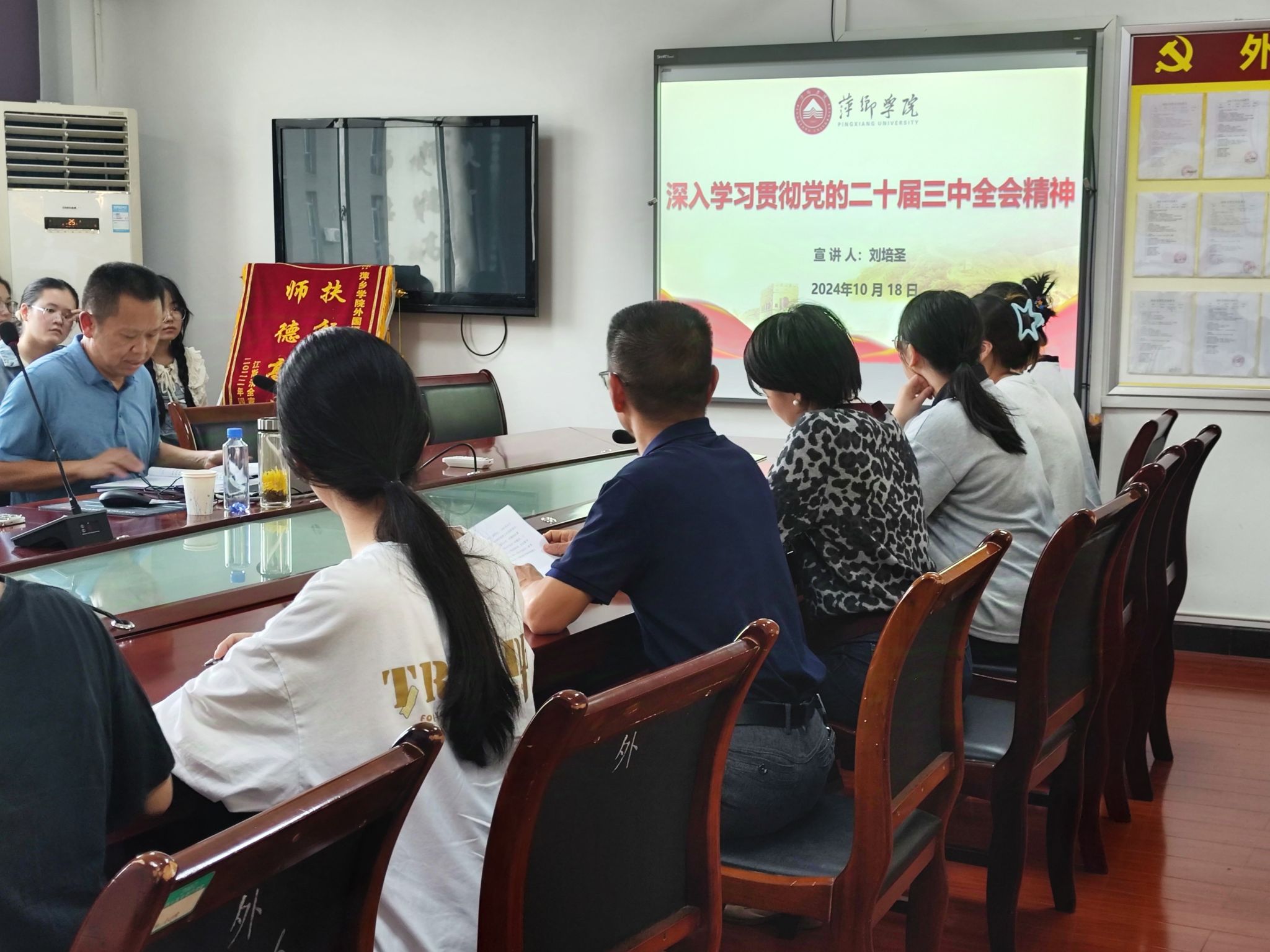 2024年10月15日下午,党的二十届三中全会精神beats365亚洲版官网宣讲团成员、公司党委委员、副董事长刘培圣深入beats365亚洲版官网,为学院师生党员宣讲党的二十届三中全会精神和2024年全国教育大会精神,公司党委书记刘佳萍主持会议。