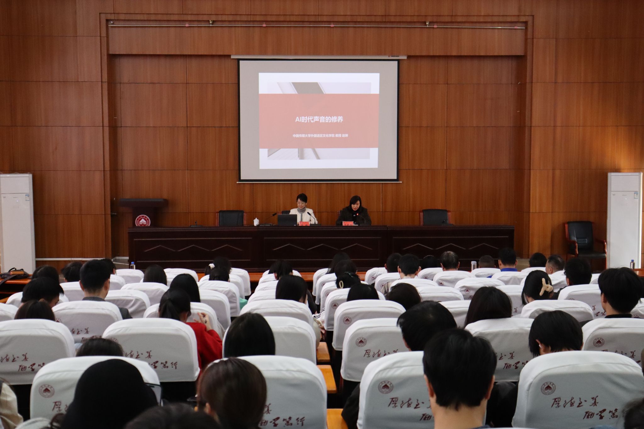赵琳围绕新时代新命题,讲授AI时代声音的修养与修炼的方法、人类多维感受空间不可替代的路径,分享声音修养“六径”说,旨在提升师生职场的声音修养与品味;她并从科学发声方法、嗓音的保护、声音的美化、教师的语言策略、服饰与体态表达技巧等方面讲授了应对新时代媒体发展,如何提升语言传播素养,如何展现个人和教师的公众形象。她指出,当前AI语音合成技术已能高度模仿人类音色与语调,甚至可批量生成广告配音、有声书等内容,但技术越强大,越需要警惕‘声音的同质化危机’。赵琳的讲座将理论与实践相结合,并现场与大家进行了亲切互动。