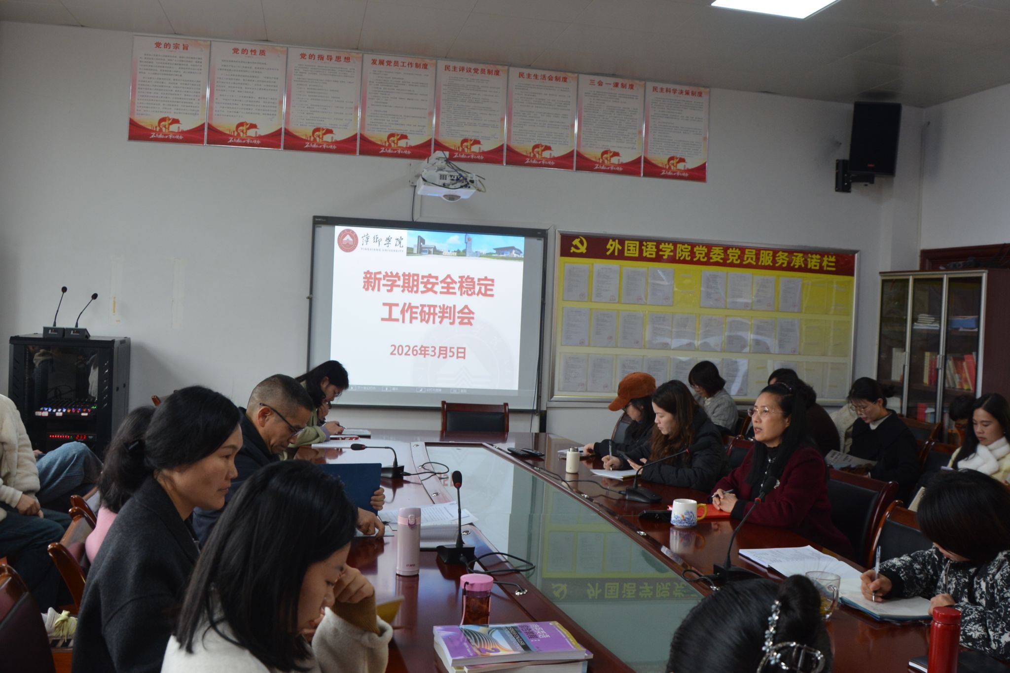 会议特别针对春季传染病防控、毕业生就业压力疏导、心理调节、防范电信网络诈骗等重点领域进行了专项研判,逐一梳理风险点,研究制定应对措施。