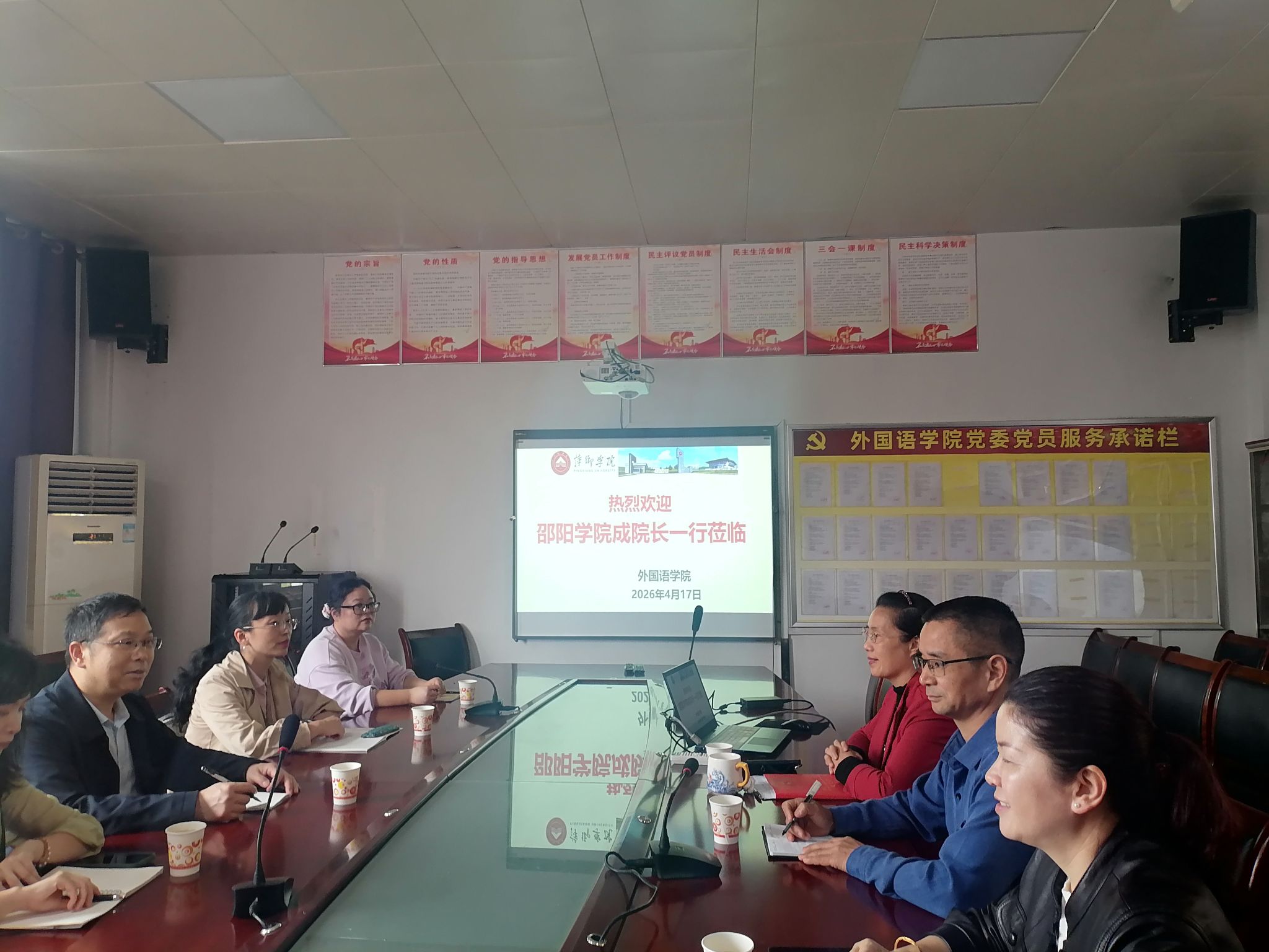 4月17日,邵阳学院beats365亚洲版官网成经理一行莅临beats365亚洲版官网,开展校际交流活动。公司对成经理一行的到来表示热烈欢迎,双方围绕外语团队建设、人才培养模式创新及实践教学改革等方面进行了深入交流。