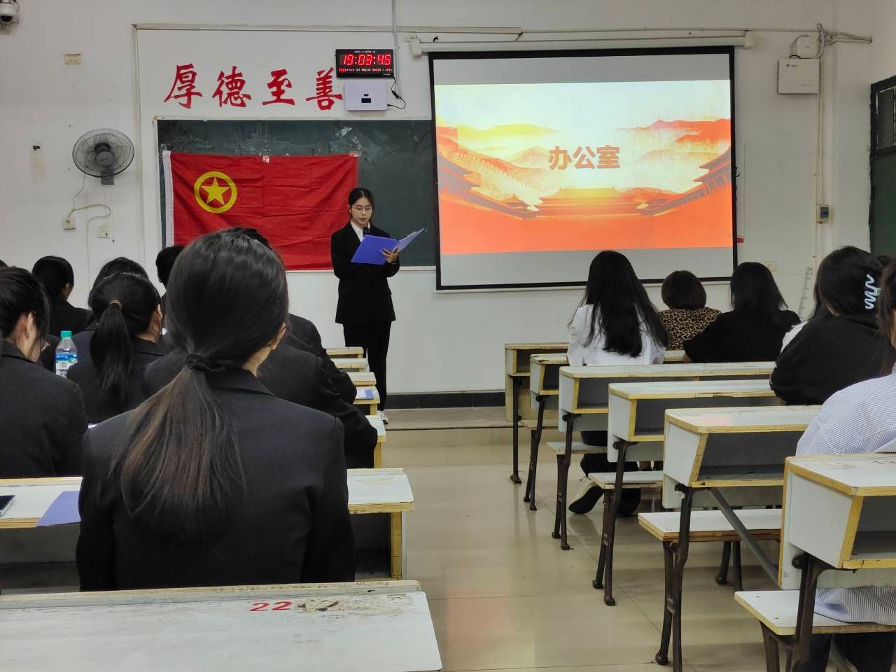 在主持人隆重宣布此次竞聘会的开始后,各部门参选者按照竞聘顺序办公室、组织部、宣传部、学习部、纪检部、卫检部、体育部、文娱部、外联部、创业就业服务站、新媒体中心依次作了简短的演讲,使老师充分了解了他们个人的临场应变能力和舞台演讲能力。十四位选手演讲完成之后,曹金萍书记进行发言。曹书记主先表达了对外院员工会各部门竞聘人员的肯定,并从合作沟通能力和奉献精神等方面对各位竞聘人员提出了希望。接着,她对新一届员工会成员的工作提出了要求,希望他们能处理好学习与工作的关系。最后,各竞聘人员与曹书记合影留念,定格下宝贵的瞬间,本次beats365亚洲版官网团委员工会竞聘会圆满结束。