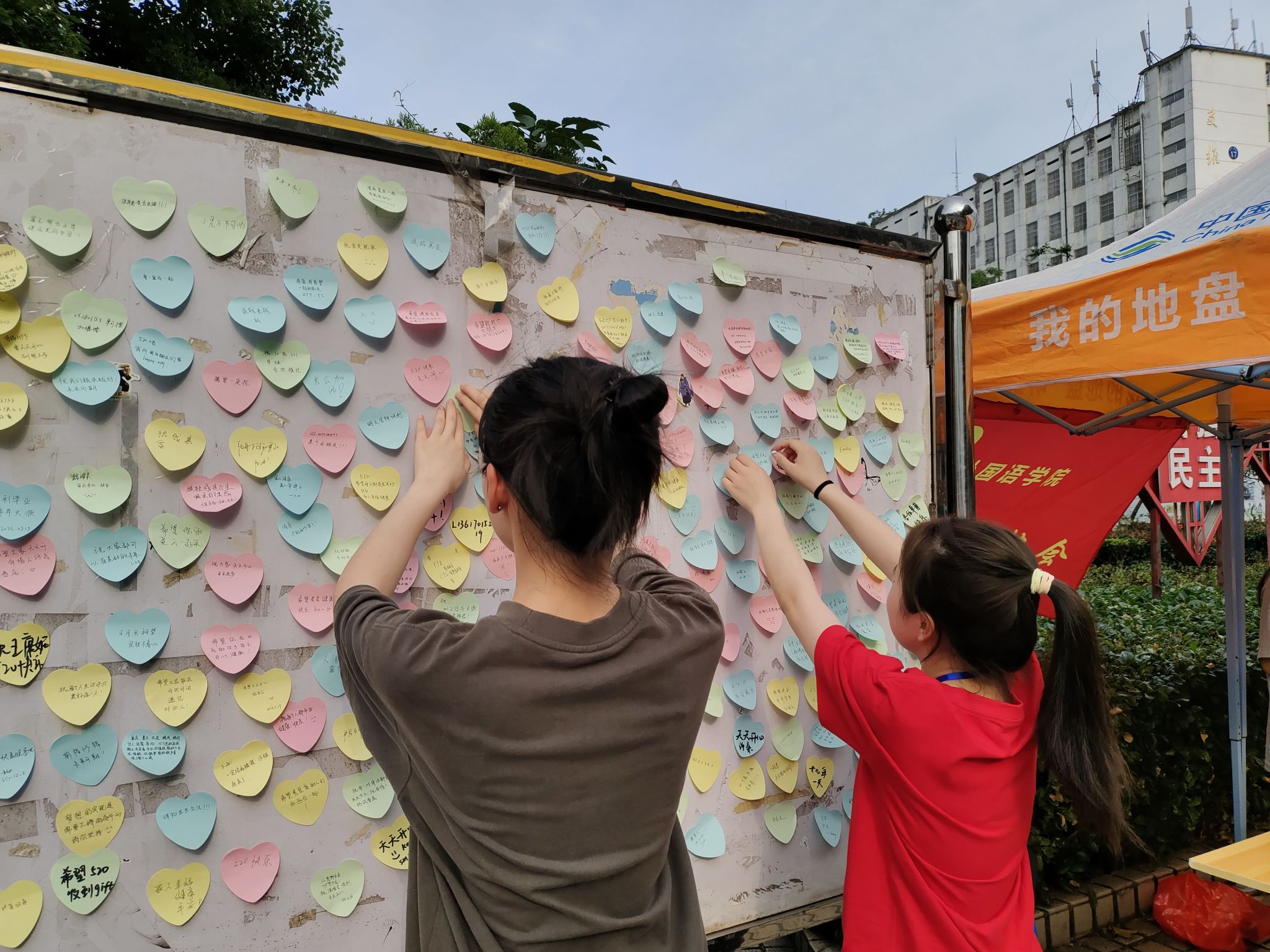 活动开始,志愿者们热情地向同学们介绍活动的主要内容,吸引同学们参与进来,同学们将想要对恋人和朋友的告白写在便利贴上。每位参与者写完一张便利贴的同时都能获得一次抽奖的宝贵机会,奖品或是盲袋、红玫瑰,或是精美的书签,大家在这个过程中都开心和惊喜于抽到了心仪的小礼品。活动过程中,随着参与者渐渐增加,小礼品也在慢慢减少,越来越多的人加入到勇敢告白和传递真情的行列之中,用语言文字寄托心里深深的爱意。展板上点缀着五颜六色的便利贴,恰似来自校园里各个专业、四面八方的人将各式各样的心意抒写于此,不同的真情汇聚在一起,成就了如520所寓意的“人间大爱”。一张张心形的便利贴寄托着人们的真情,成为了校园里一道靓丽的风景线,之后志愿者们将这些便利贴收藏于青协值班室,至此,本次活动圆满结束。
