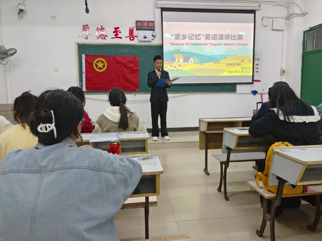 为了给同学们提供挑战自我的平台和发掘潜力的机会,调动大家学习英语的积极性,锻炼演讲能力和表达能力,加深对英语口语重要性的认识,进一步加强公司的学风建设。beats365亚洲版官网于2023年4月10日晚上19:00在英华楼3304教室举办“家乡记忆”英语演讲比赛决赛。参加本次活动的成员有公司党委书记刘佳萍,团委副书记毕鑫,团委书记助理李娜、余文彬,环保俱乐部会长汪琪,以及各部门部长和21、22级观众。