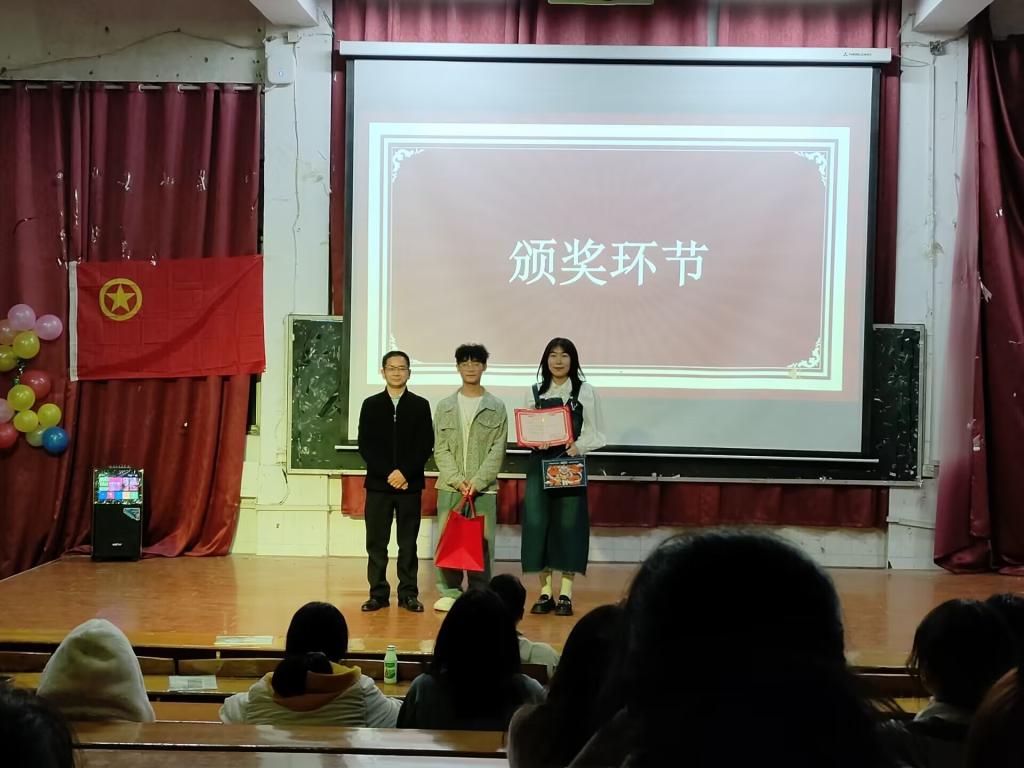 比赛开始前,一场燃爆全场的舞蹈表演推动了全场的氛围,现场观众呼声不断。紧接着,由主持人介绍大赛的规则、内容以及接下来的表演选手,比赛正式拉开帷幕。一首英文歌《GONE》通过吉他弹唱,不禁让观众眼前一亮。一首《夏天的风》,很好的带动了现场氛围。比赛如火如荼的进行,每首歌曲都优美动听,每位表演者都倾力歌唱,观众们也十分兴奋与期待。歌曲《七里香》的演唱,仿佛让我们梦回青春时光,勾起大家心中那段青涩而美好的时光。为了活跃现场的氛围,比赛过程中还融入了夹气球、你画我猜的游戏互动环节,大家十分地踊跃举手来到舞台,积极且热情地参与到活动中来,台上台下的人都兴致满满,乐此不疲。接着,由男女合唱的《手写的从前》也让大家陶醉其中,悦耳动听的歌声在耳边萦绕,曼妙的音符在眼前跳跃。每一声声歌唱都让观众沉醉其中,让他们心随歌动、手跟随着歌曲的节奏而摆动。在所有选手表演结束后,刘书记进行致辞,首先他肯定了选手们在舞台上的表现,并鼓励大家积极参与类似的活动来展现自我。随后,由冷全宝老师进行补充,他建议同学们要多多参加学校组织活动,在这过程中不断地锻炼自我。正值青春的同学们热血沸腾,应当迎接更多的挑战。最后,到场嘉宾为获奖人员颁奖并合影留念。在同学们的掌声中,本次大赛圆满结束。