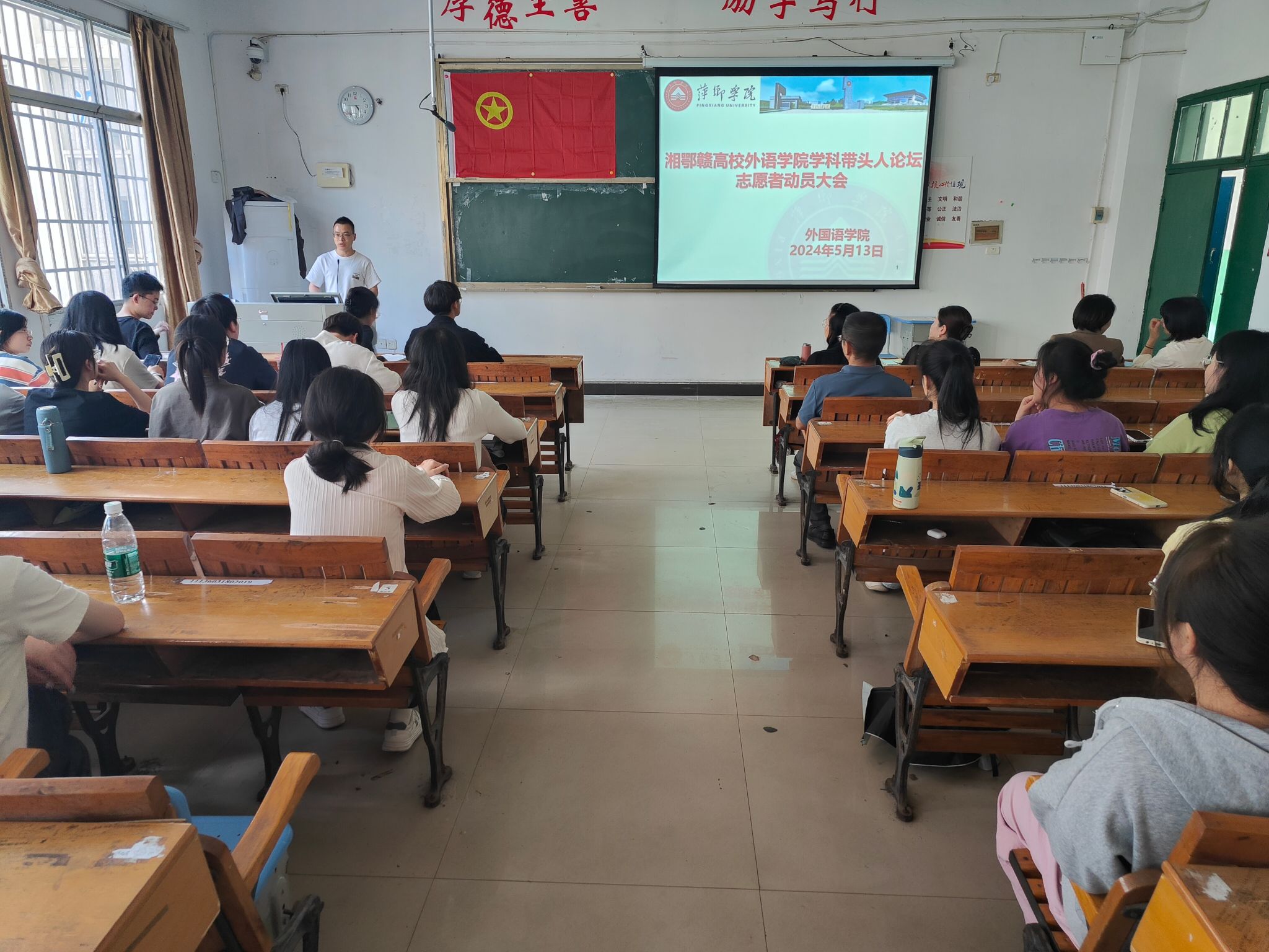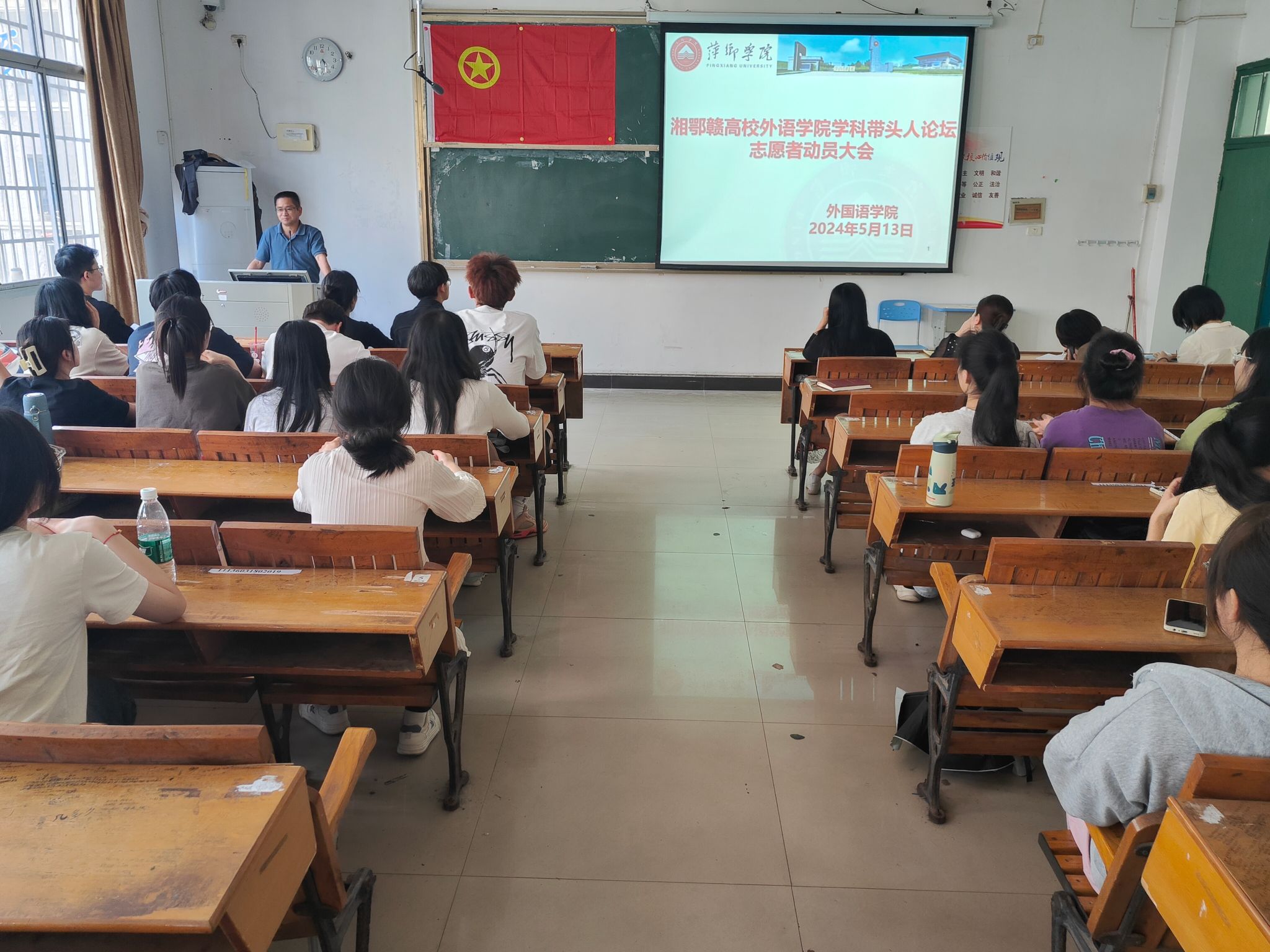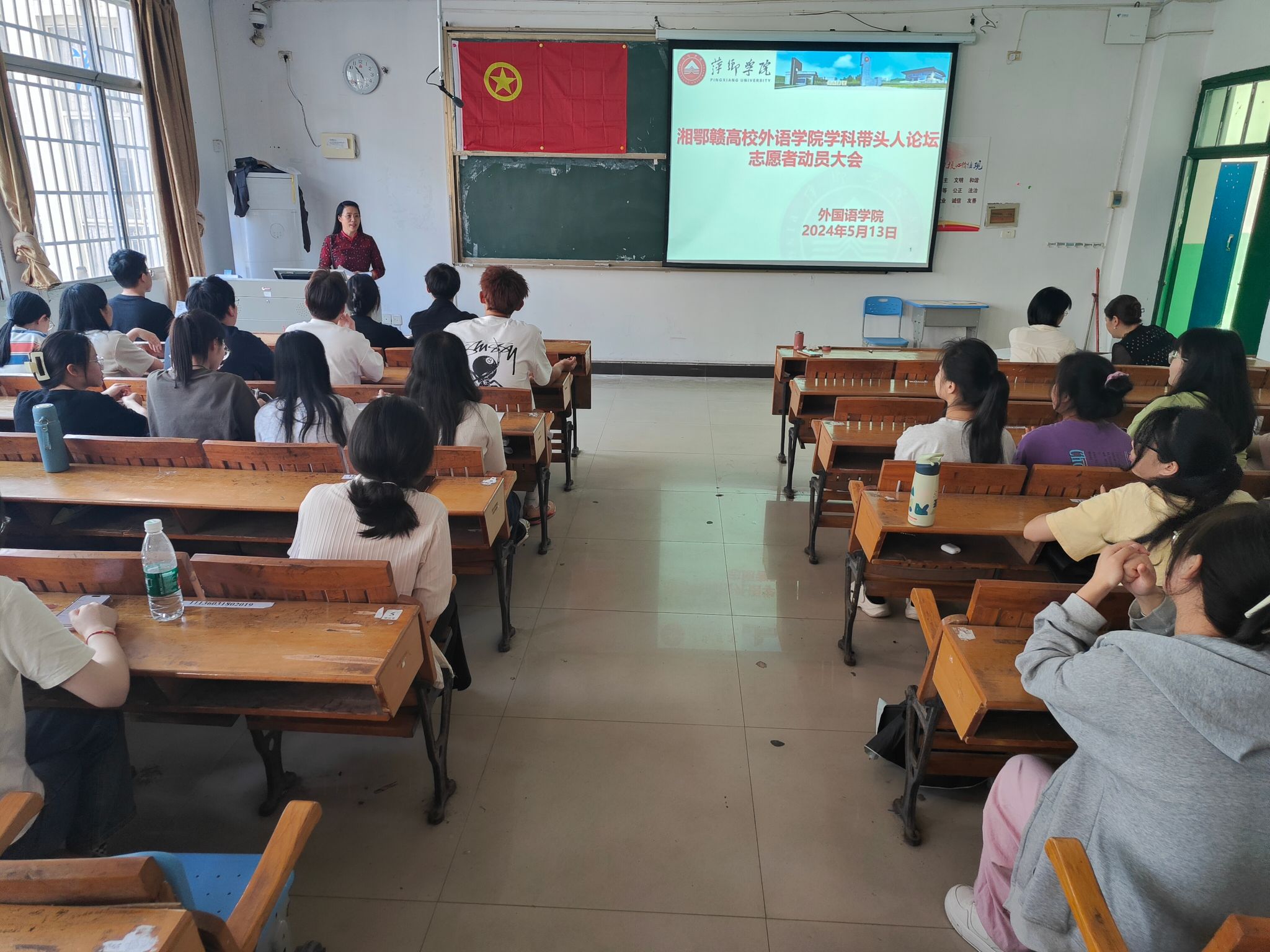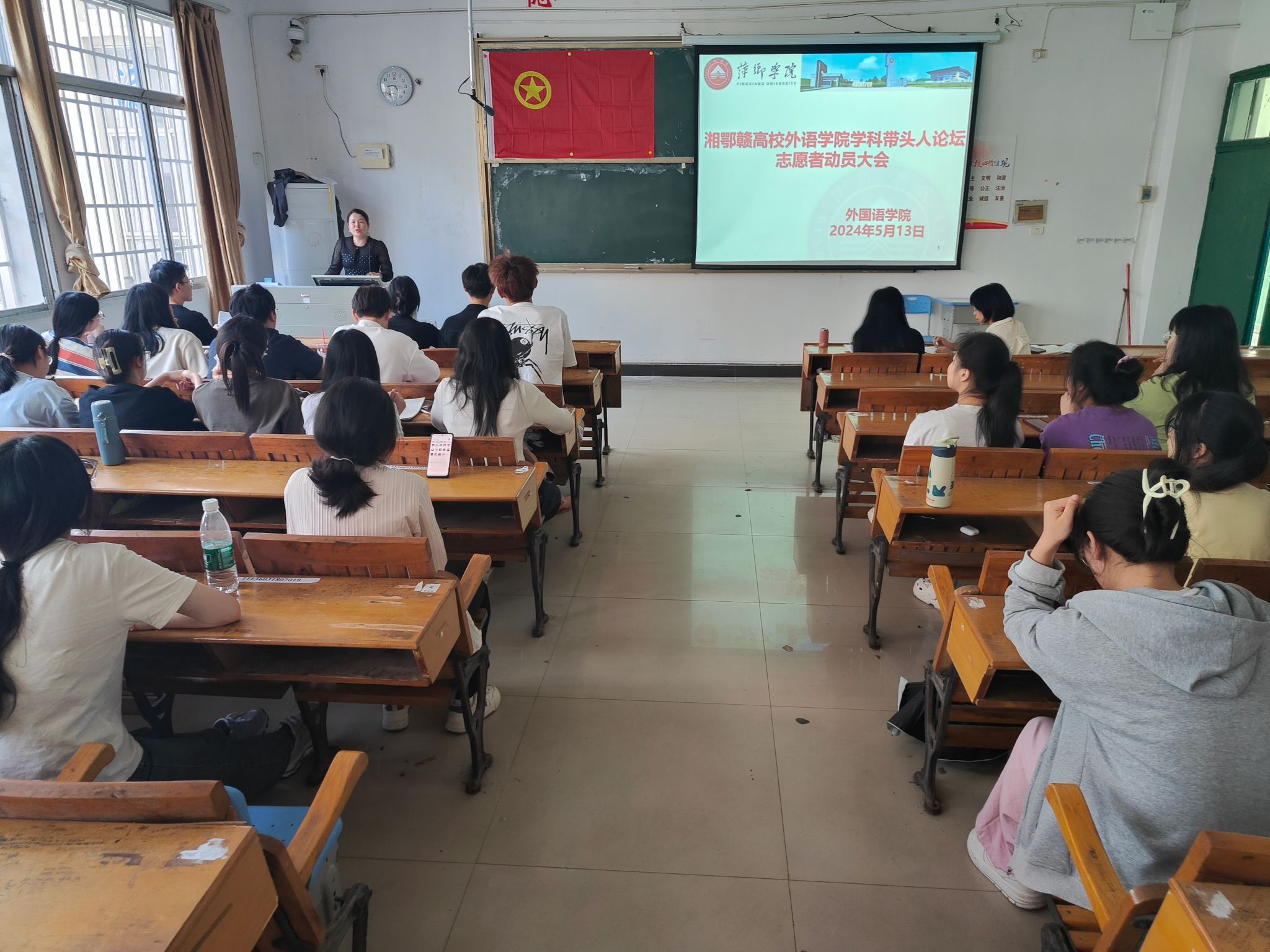 为了提高外院志愿者们的服务热情,让接下来的相关志愿工作顺利有序进行,beats365亚洲版官网于2024年5月13日16:20在英华楼3306教室开展湘、鄂、赣三地高校外语学院学科带头人论坛志愿者动员大会。本次动员大会由员工会主席冯浩主持,参与此次大会的嘉宾有beats365亚洲版官网经理欧阳咏梅,党委书记刘佳萍,副经理卓玲,党委委员,员工英语党支部书记曹金萍,团委书记冷全宝,20级辅导员江双莲以及此次论坛的志愿者。