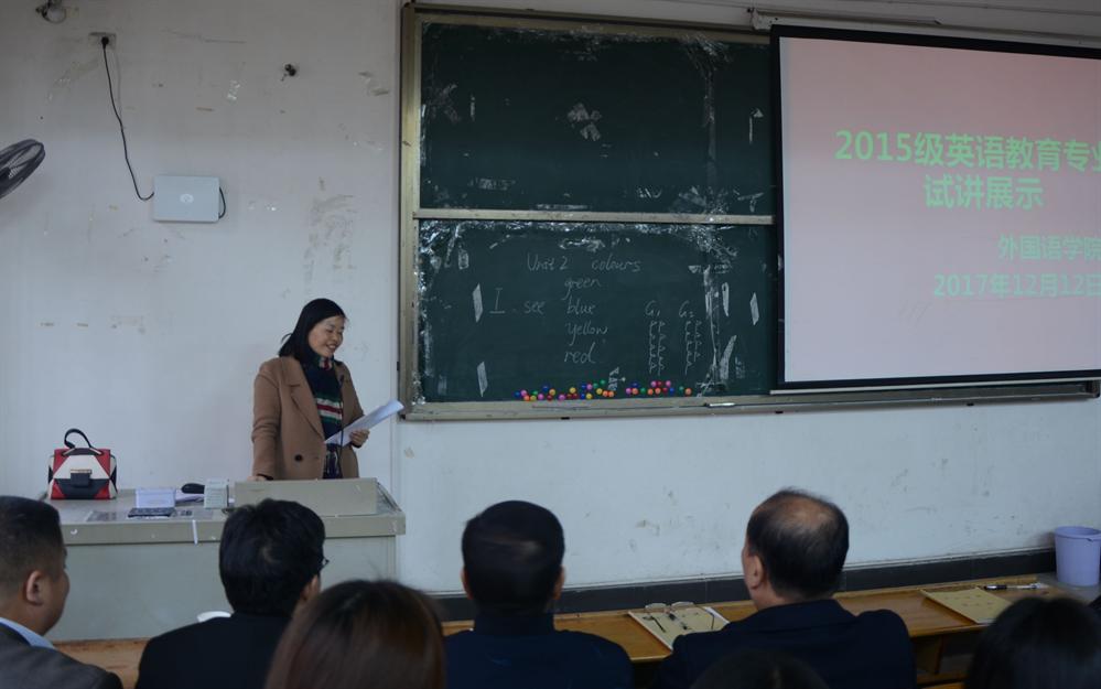 届英语教育专业试讲指导教师们应邀参加并担任评委应邀参加本次汇报会由英语教育教研室主任陈怡主持。