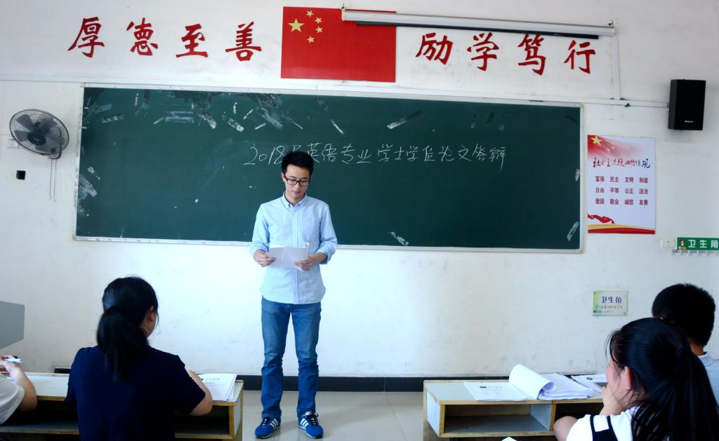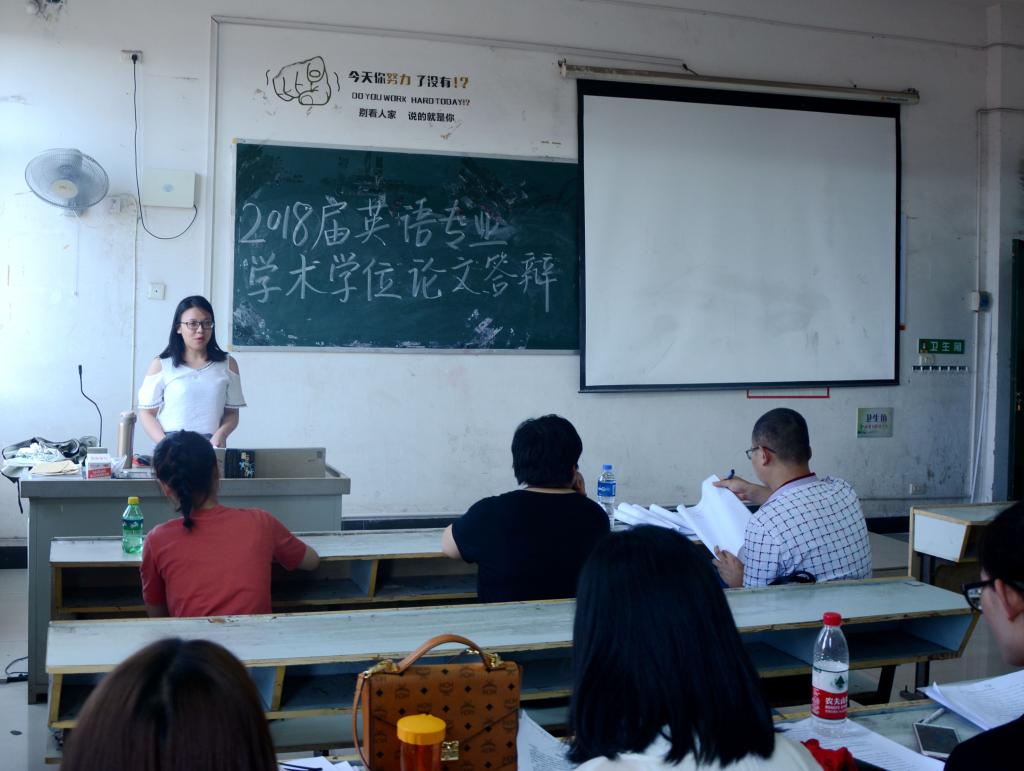 5月25日下午,外国学院2018届毕业生英语专业学位论文答辩活动在英华楼举行。beats365亚洲版官网经理欧阳咏梅、书记黄柏萍、副书记刘佳萍及论文指导教师、2018届英语专业员工参加。所有员工都被分在了12个小组分别同时进行答辩。