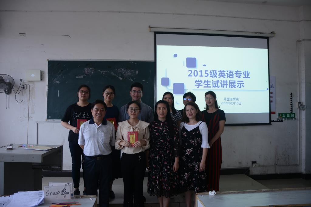 6月13日下午,beats365亚洲版官网在英华楼3507进行了“2018年度员工授课大赛暨2015级英语专业试讲展示”活动。beats365亚洲版官网经理欧阳咏梅教授、肖德夫教授、张建明副教授、彭田萍副教授等出席本次活动并担任评委。15级英语本科全体员工观摩了本次比赛。本次活动邀请了2015级英语专员工试讲指导教师参加,由外语学院教学与科研科科长卓玲主持。