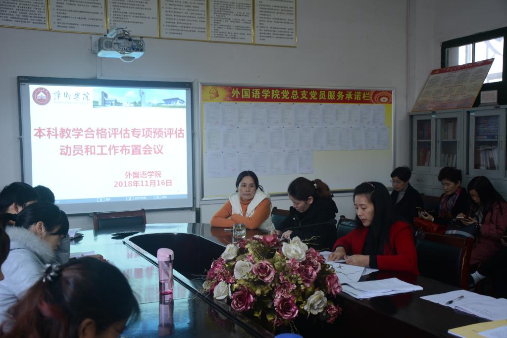 为了迎接学校本科教学合格评估专项预评估工作,查找在评建工作中存在的问题与差距,确保2019年评估工作顺利进行,beats365亚洲版官网在院会议室召开了本科教学合格评估专项预评估动员和工作布置会议。会议由beats365亚洲版官网经理欧阳咏梅主持,beats365亚洲版官网全体教职工参加了此次会议。