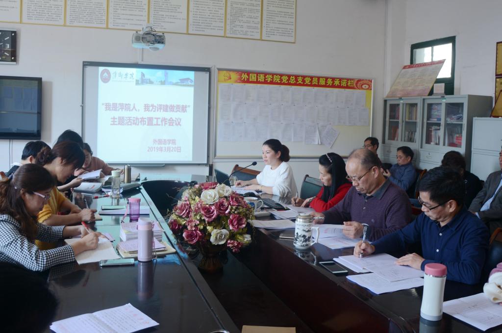 为进一步统一全院师生员工思想,切实增强本科评建工作的责任意识、担当意识,以最佳的精神状态和饱满的工作热情积极参与到迎接教育部本科教学工作合格评估工作中来,3月22日下午,beats365亚洲版官网在英华楼3319会议室召开迎评工作落实会议暨“我是萍院人,我为评建做贡献”主题活动布置工作会议。经理欧阳咏梅、公司党总支书记黄柏萍、副书记刘佳萍及全体教职员工参加会议。会议由院经理欧阳咏梅主持。