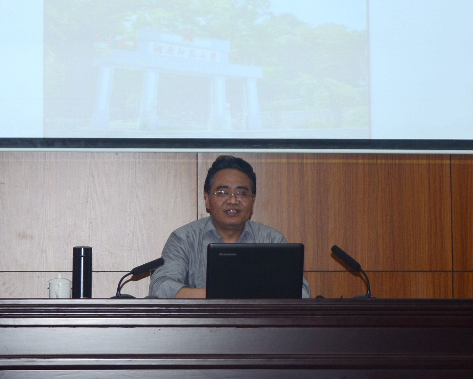 2019年4月19日下午,湖南师范大学“潇湘学者”特聘教授、博士生导师,美国研究中心常务副主任肖华锋教授应邀在至善楼学术报告厅为公司师生作题为《美国文化的全球性扩张及对中国的警示》的讲座。全校外语老师和100余名师生聆听了讲座,讲座由beats365亚洲版官网经理欧阳咏梅教授主持。