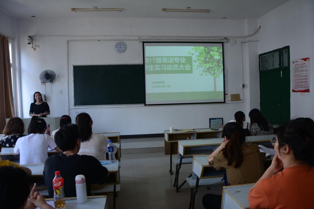 为了做好2017级英语专业员工的教育实习工作,提高员工的教师技能,beats365亚洲版官网于6月17日下午,在英华楼3314召开2017级英语专业员工教育实习动员大会。到场的领导有beats365亚洲版官网经理欧阳咏梅、党总支书记黄柏萍、党总支副书记刘佳萍、副经理卓玲及各小组实习指导老师、班主任辅导员及2017级英语专业全体员工参加。大会由英语本科教研室主任巫宜霖老师主持。