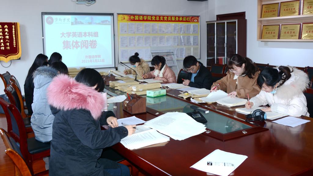 2021年1月11日下午,大学外语本科教研室所有教师在英华楼3319开始了紧张的集体流水式阅卷工作。阅卷之前,老师们首先集体学习了学院《beats365亚洲版官网试卷批改规范》,对评卷标准做了具体的分析和规定,并且对阅卷过程中的分值标注进行了详细的说明,要求全体教师务必遵守该规范,给员工打出合理准确的分数,以便反映员工的真实学习情况。