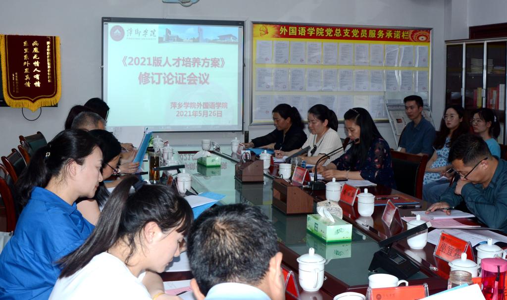 为了做好《2021版人才培养方案》修订工作,进一步贯彻落实公司党史学习教育活动,开展好“我为师生办实事”实践活动。5月18日下午,公司英语专业人才培养方案论证会在英华楼3319会议室召开。萍乡市教育局教研室主任黄萍、萍乡市第二中学董事长刘冬萍及黄春梅、蔡露、郭小萍、文美英、丁冬、何玲等萍乡市各中员工的英语骨干教师,公司领导班子、各教研室负责人及英语专业骨干教师参加了本次论证会。