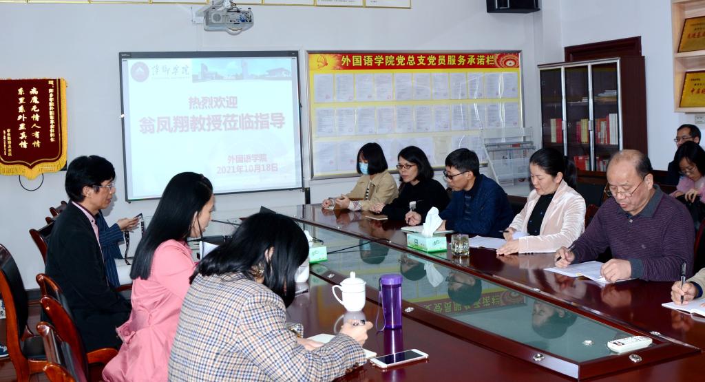 2021年10月18日,上海海事大学翁凤翔教授应邀在英华楼3319会议室给全校外语教师作讲座,讲座题目为“论商务英语的课程思政教育”。本次讲座是学校80周年校庆“学术活动月”系列学术讲座之一。