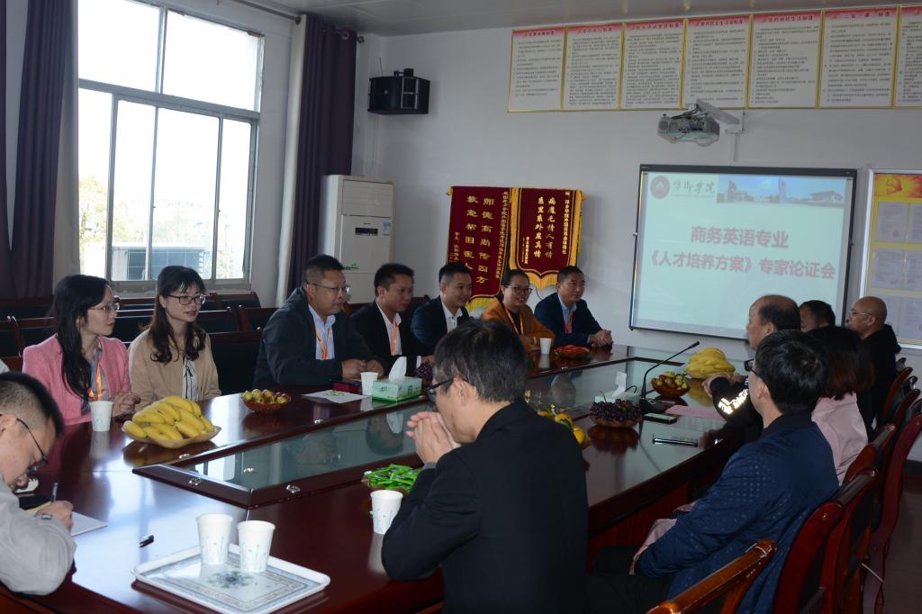 黄柏萍书记对各位专家和企业代表的到来表示热烈欢迎,对公司商务英语专业近两年的发展做了简单介绍。并详细的介绍了商务英语专业人才培养方案的修订情况。