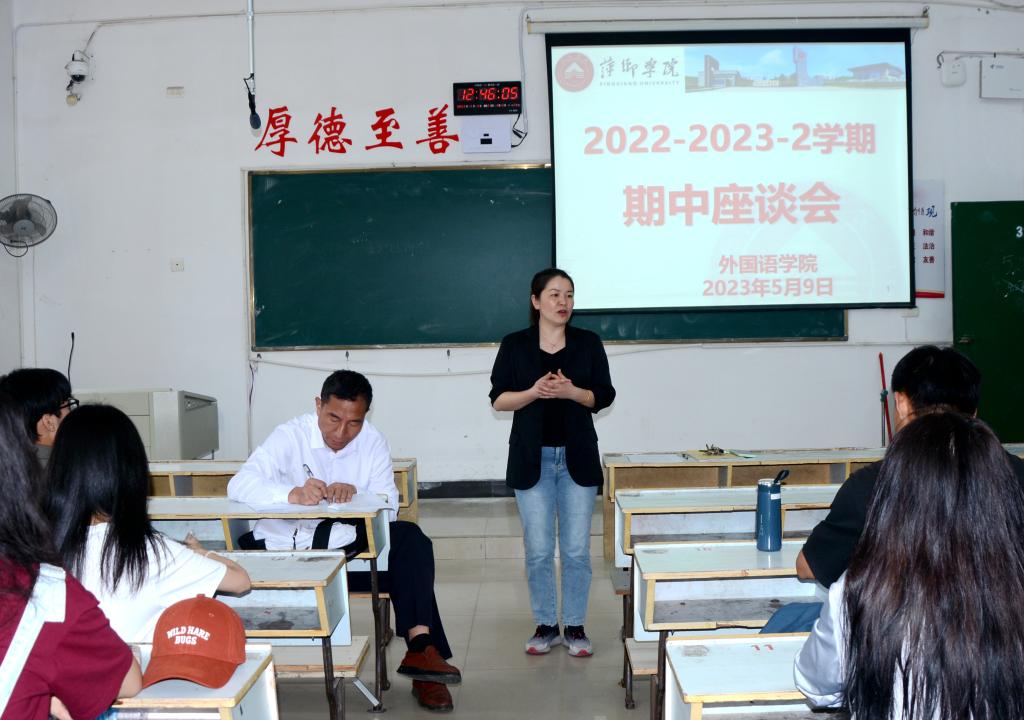 为了全面了解beats365亚洲版官网及全校外语教学工作状态,进一步加强和规范教学管理,强化教师的质量意识和责任感,扎实教学一线工作,beats365亚洲版官网于5月14日中午在英华楼分专业、分场地召开了2022-2023学年第二学期期中员工座谈会。公司党委书记刘佳萍、经理欧阳咏梅、副经理卓玲、各教研室主任及各专业员工代表等参加了座谈会议。