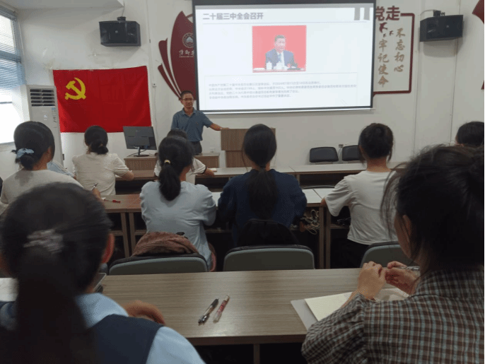 首先,刘书记向大家介绍了党的二十届三中全会是在以中国式现代化全面推进强国建设、民族复兴伟业的关键期召开的一次十分重要的会议,同时并为大家讲解了党的二十届三中全会精神的内涵及意义。