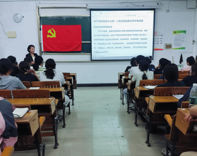 首先,曹金萍书记阐述了作为一名合格的共产党员应该是什么样的。其次,曹金萍同志结合自己的亲身经历让大家认识到学习党史知识的重要性,增强了同学们对党的认识,端正了他们的入党动机。