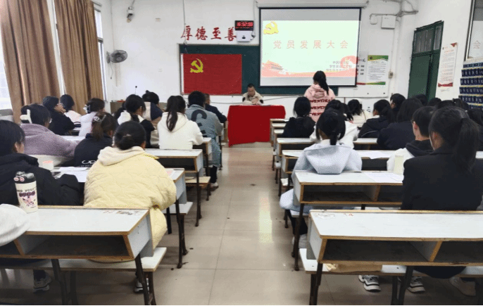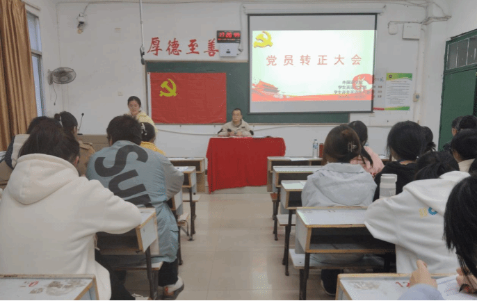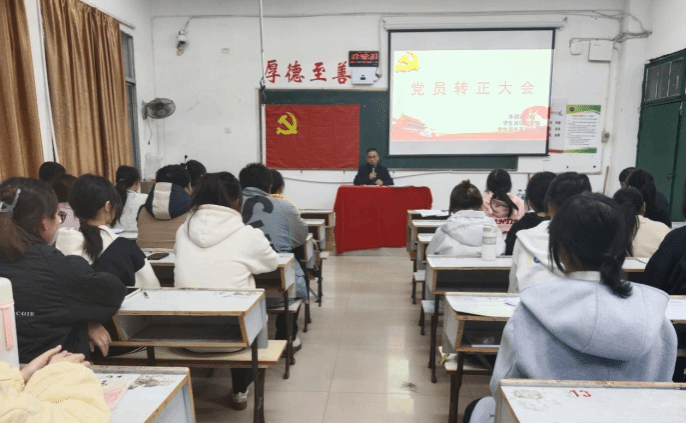 会议第二阶段,讨论接收余文彬、卢燕等同志为中共正式党员事宜。预备党员余文彬、卢燕等依次庄重宣读转正申请书,向党组织汇报在预备期间的思想认识、理论学习和工作生活等情况。入党介绍人对他们预备期间的政治理论学习成效、参与党组织活动的积极性、在群众中模范带头作用的发挥情况等方面的综合表现,进行了全面细致的介绍,并表明同意转正的态度。经到会党员无记名投票表决,冷全宝老师宣读支部大会决议,同意余文彬、卢燕等4位同志如期转为中共正式党员。