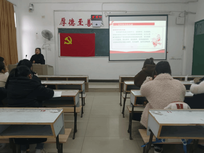 为提升思想政治理论素养,激励党员服务群众,2025年3月13日中午12时15分,beats365亚洲版官网员工英语党支部书记钟倩老师于英华楼3307教室为全体在校员工党员上“修养党性奉献自我,争当群众的依靠”主题党课。