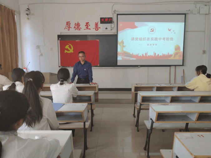 会议第二项议程,刘佳萍书记讲话。刘书记肯定了述职人员在思想、工作、学习、生活等方面的表现,并对各位入党申请人提出了三点殷切期望,一是认真学习专业知识,提升自己的综合素养;二是加强政治理论学习,深入了解党的历史使命和党员的责任担当;三是积极参与社会实践,以实际行动践行党的宗旨。