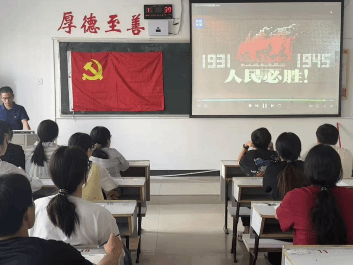 首先,刘书记以回溯抗战艰苦历程为切入点,讲述弘扬伟大抗战精神和汲取抗战宝贵经验的重要性,并着重阐述了各族人民携手同心,团结奋进新征程的必要性。课堂上,刘佳萍书记与同志们一同观看了“中国人民奋战的5098个日夜”的视频,让大家深切感受到革命先烈坚定的理想信念与崇高的牺牲精神。