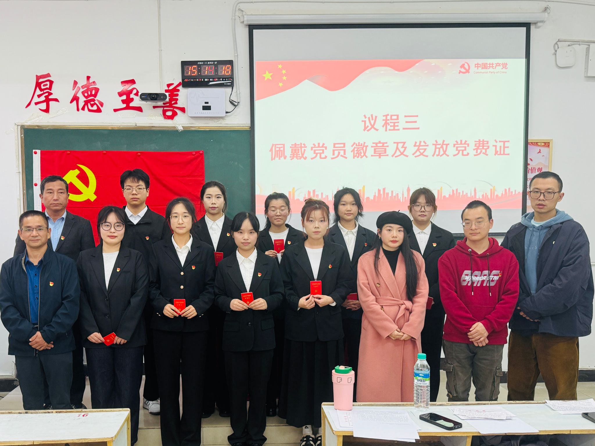 活动第一项,合唱《国际歌》。活动第二项,主持人宣读党员名单并致贺词。活动第三项,支部老师为新发展成为预备党员的同志佩戴党员徽章并发放党费证。活动第四项,全体老师为过“政治生日”的所有预备党员发放礼品。