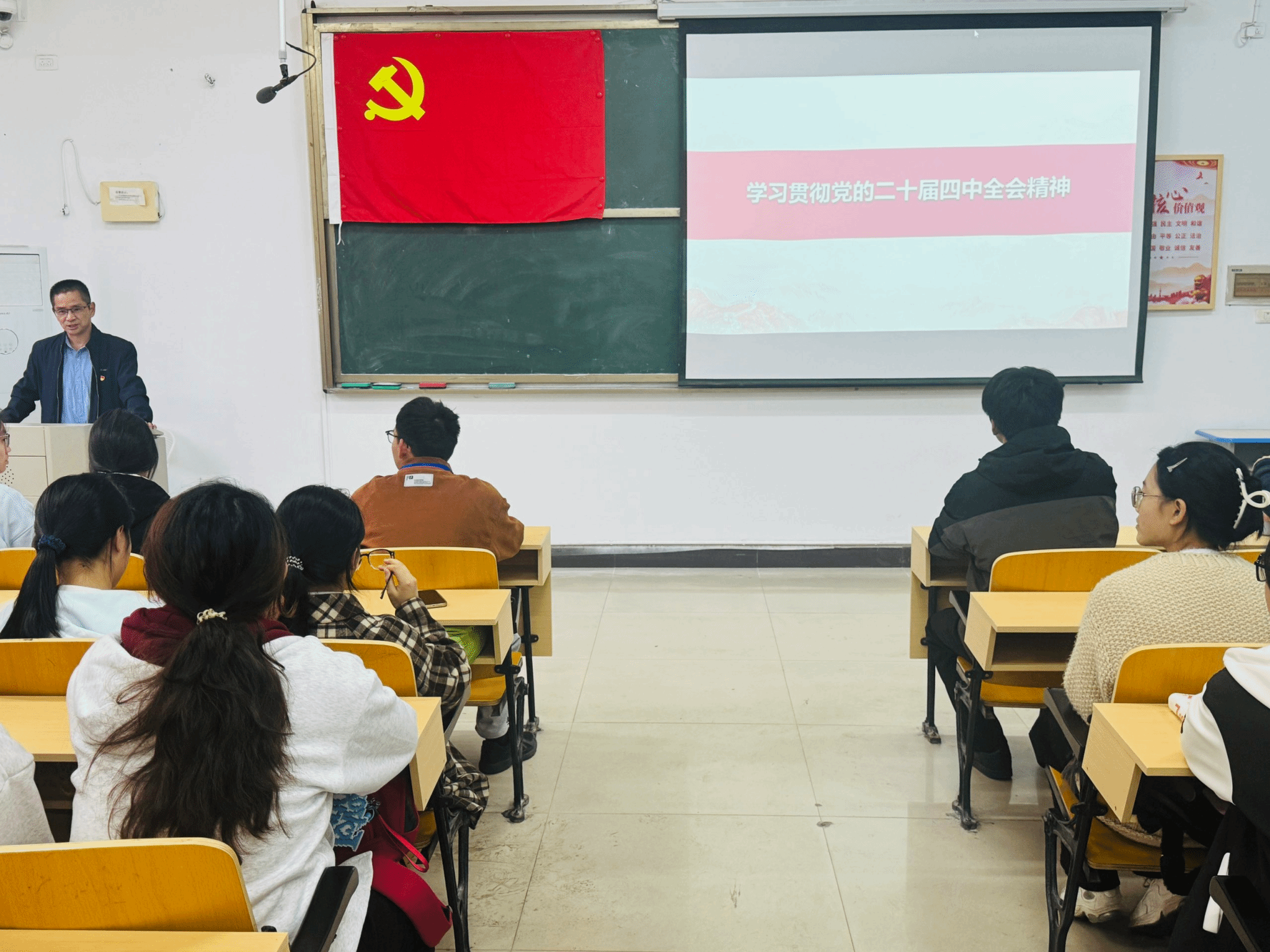 为深入学习贯彻党的二十届四中全会精神,切实增强入党申请人的使命担当,凝聚奋进力量。2025年12月3日下午4时10分,公司党委书记刘佳萍于英华楼3306教室为25年下半年入党申请人上“学习贯彻党的二十届四中全会精神”主题党课。