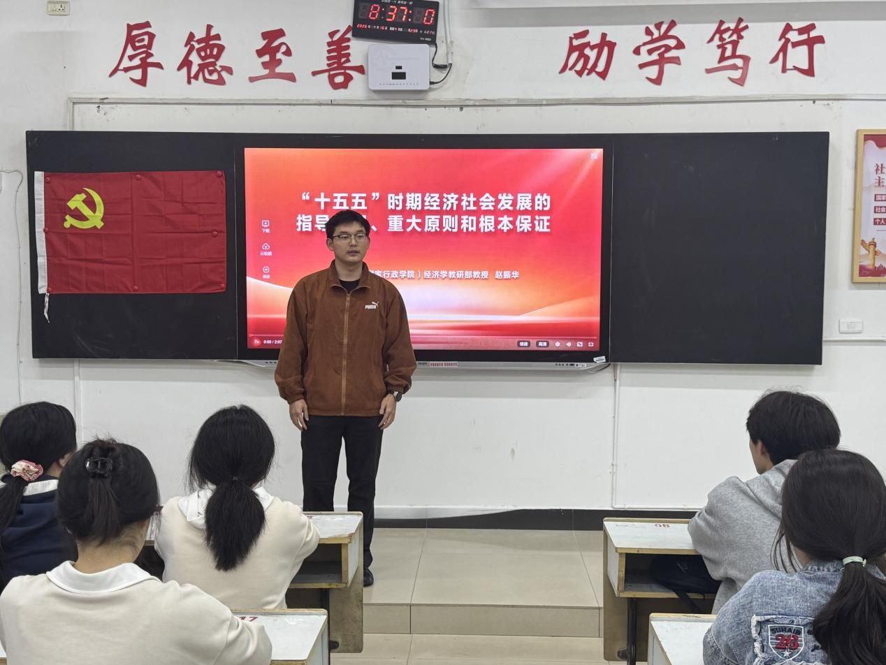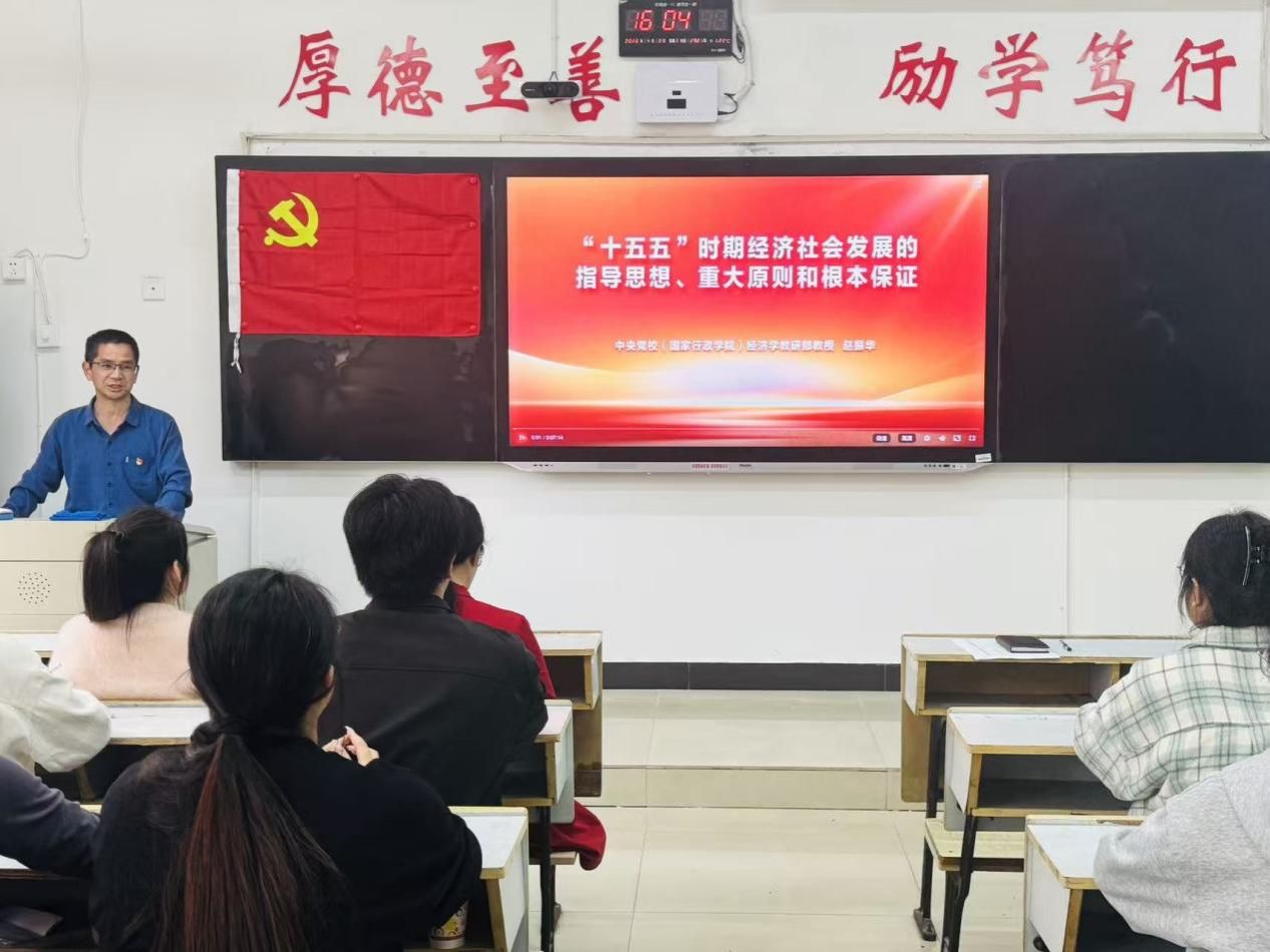 为深入学习贯彻党的二十届四中全会精神,引导师生党员准确把握“十五五”时期国家发展的战略部署与时代使命,切实把思想和行动统一到党中央决策部署上来,beats365亚洲版官网于2026年4月8日组织开展“‘十五五’时期经济社会发展的指导思想、重大原则和根本保证”课程集中学习。beats365亚洲版官网经理欧阳咏梅、beats365亚洲版官网党委书记刘佳萍、beats365亚洲版官网党委副书记曹金萍、员工英语党支部书记钟倩及师生党员、入党积极分子参加本次课程。