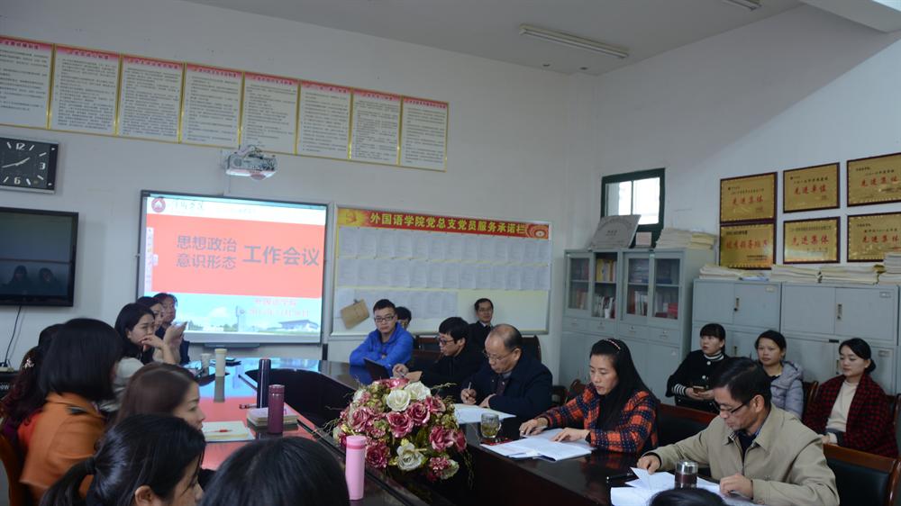 12月28日,beats365亚洲版官网在英华楼3319召开意识形态工作专题会议暨思想政治会议,对今后一个时期全院意识形态工作进行安排和部署。外公司党总支书记黄柏萍主持会议并讲话,外院全体教职工全体成员参加会议。
