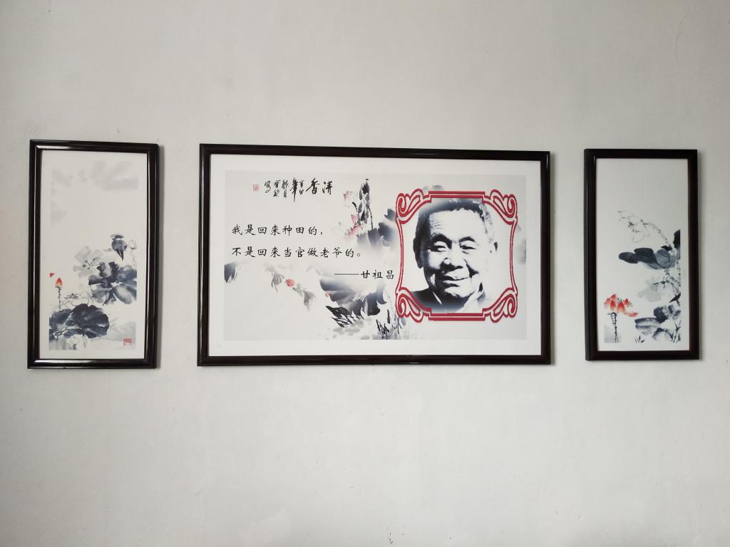 经过一个多小时的车程,大家来到了甘祖昌干部学院。跟随讲解员的步伐,我们沿着街道走向甘祖昌将军的故居,沿路的围墙上绘着许多甘祖昌将军的故事插画,这也让大家更加了解了甘祖昌将军不平凡的一生。到达故居后,讲解员开始讲解,整栋楼的布局很简单,但又不失条理。一楼有厨房以及甘祖昌将军孩子的卧室。二楼的格局稍微复杂一点,因为它被甘祖昌将军用来会客和办公。在甘祖昌将军和龚全珍老阿姨的卧室里挂着一幅合照,整体的布局也很温馨,让人可以想象在过去那段艰苦的岁月中,这对夫妻的伉俪情深。走廊的墙上挂满了当年甘祖昌将军带领农民建设农村的照片以及参加活动的合照,通过观看照片感受到了甘祖昌将军的精神。