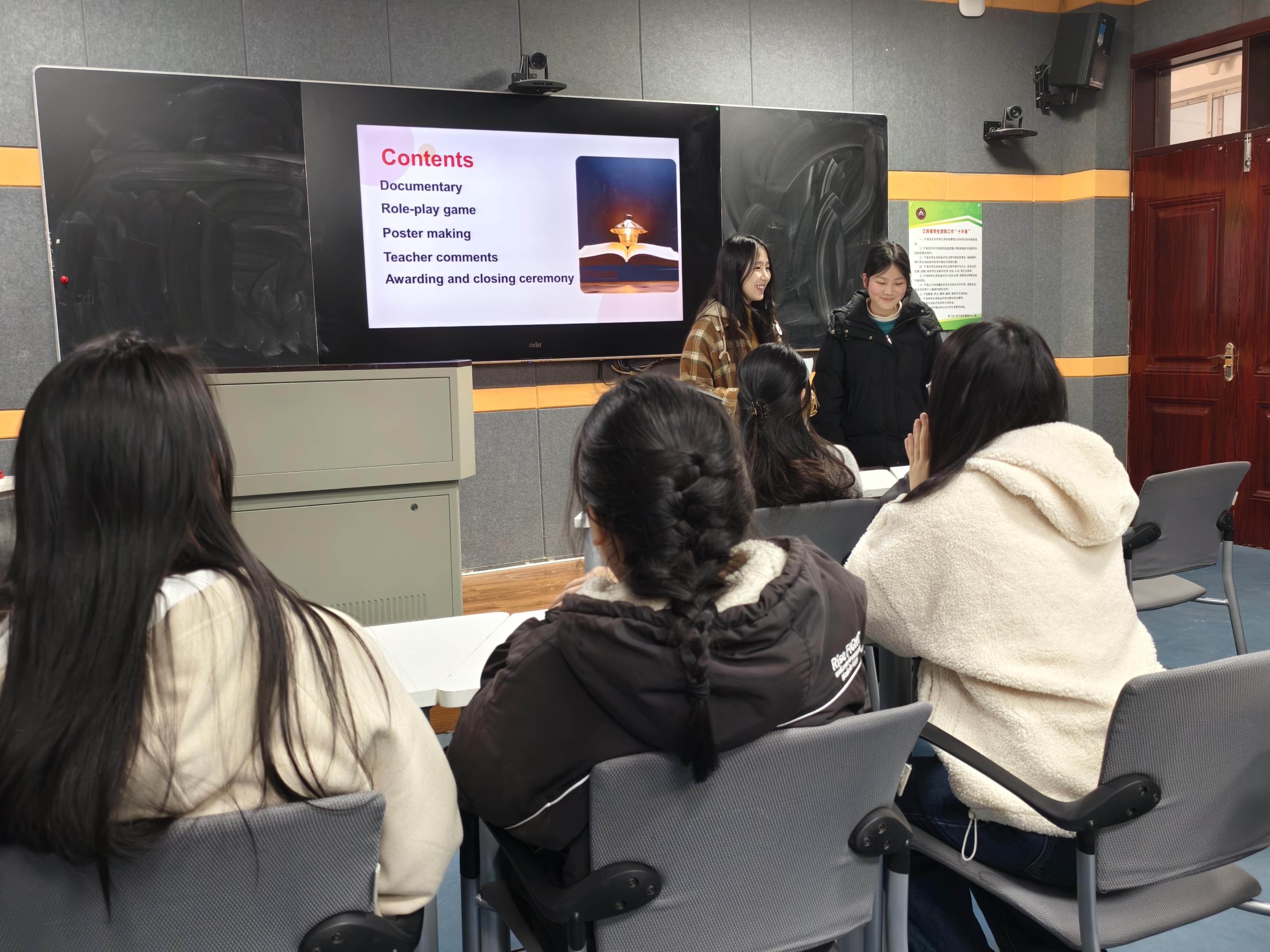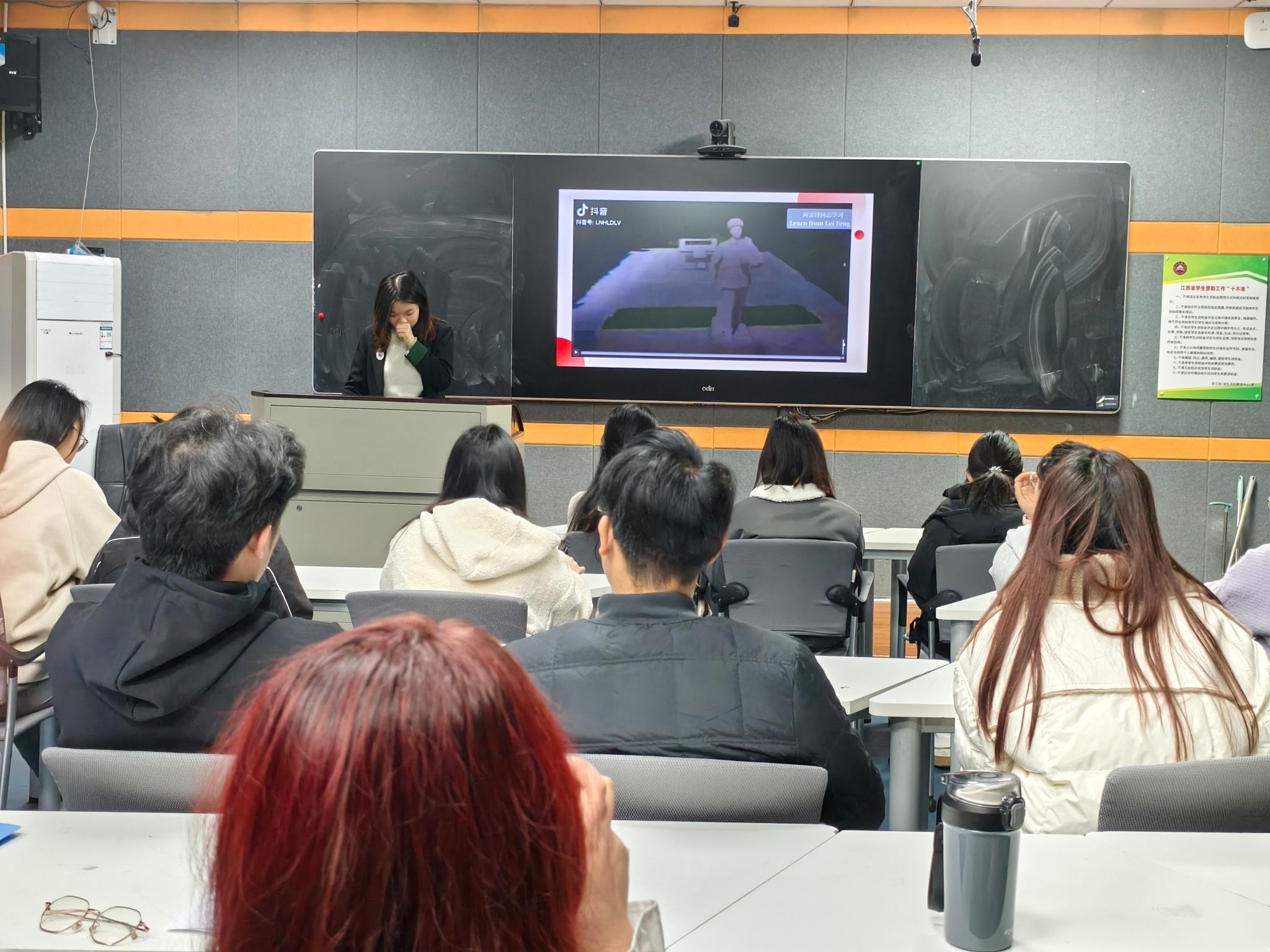 活动开始前,主持人让同学们进行自我介绍,大家互相熟悉后,此次活动正式开始。首先,主持人播放一则有关雷锋生平的视频,这段视频让我们进一步了解了雷锋同志,明白了他的可贵精神。接下来是问答环节,同学们迅速并准确地回答出了每一个问题,可见他们观看视频之仔细。紧接着,进行角色扮演,成员们被分为了四组,在每一小组激烈地讨论之后,为我们呈现了表演。这个环节,大家尽显才能,精彩亦有趣。随后,DIY画作环节,彩笔手中握,纸上生动显,集思广益,成员们绘出具有雷锋精神的代表图案,写下雷锋精神的内涵与意义。最后,外教老师Joey为获奖选手颁奖以及分发小礼品,自此本次活动圆满结束。