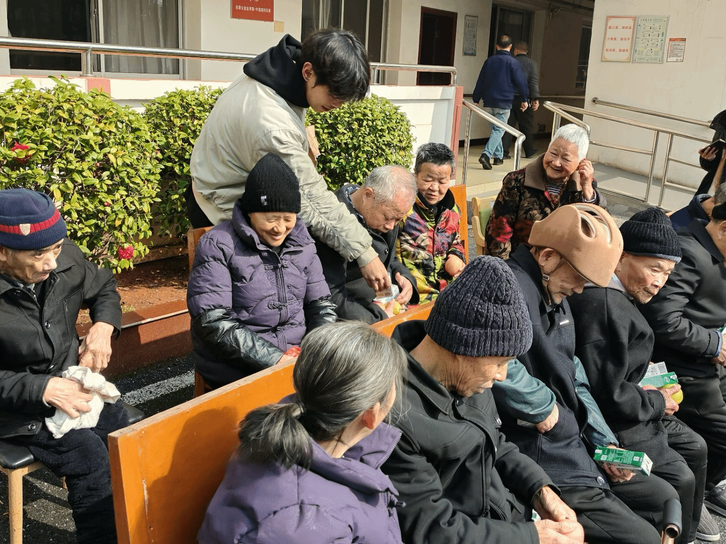 活动当日,志愿者们带上了准备好的牛奶与水果早早来到了安源镇敬老院,与爷爷奶奶们互动并开展了一些互动小游戏。活动开始,志愿者们为爷爷奶奶们带来了歌曲演唱《小苹果》、《强军战歌》和《最炫民族风》,手势舞表演《桃花朵朵开》和诗朗诵《读中国》,爷爷奶奶们脸上扬起了喜悦的笑容,掌声、欢笑声此起彼伏,现场气氛轻松活跃。接下来,志愿者为老人提供贴心的生活服务,帮忙打扫房间、整理衣物、打扫敬老院卫生、给老人们分发慰问品,老人家们开心地说着“谢谢”随后,志愿者们陪老人聊天,倾听他们讲述过去的故事和生活经历,沐浴在阳光下,陪他们唠唠家常,大家脸上都洋溢着喜悦与幸福的笑容。之后,志愿者们与老人们合影留念,他们互相祝福彼此后挥手道别。至此,本次活动圆满结束。