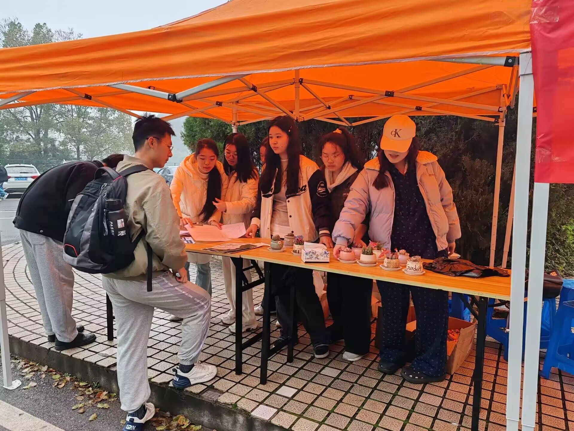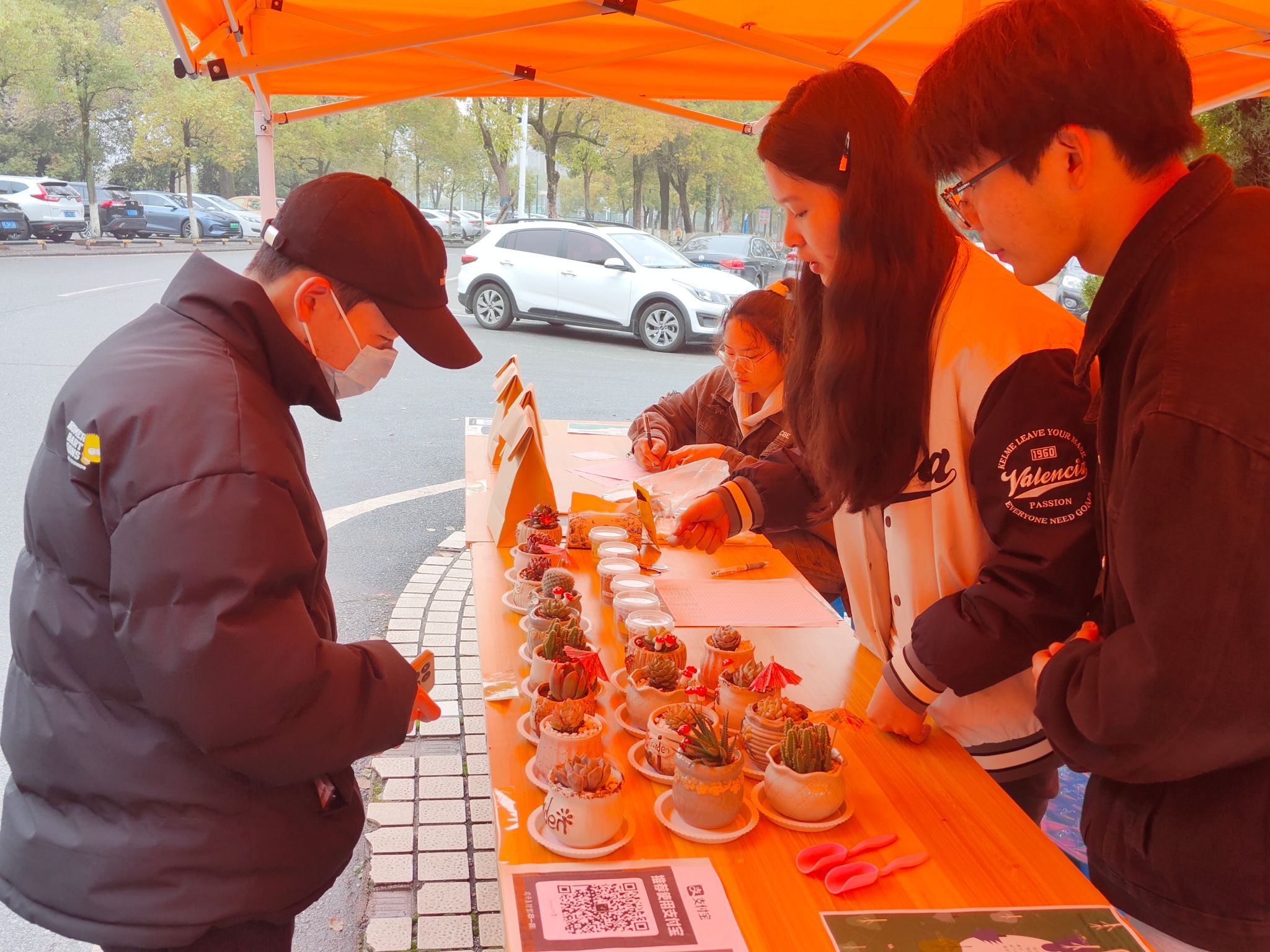活动现场,橙色帐篷整齐排列,“认养一颗绿,守护一片春——beats365亚洲版官网团委员工会”的红色横幅鲜艳夺目。活动伊始,员工会负责人通过生动的讲解,向同学们阐述了本次活动对于环境保护的重要意义,还分享了多肉植物与各类种子的生长习性和养护要点。其次,在认养多肉环节,形态各异的多肉植物摆满桌面,有憨态可掬的熊童子、叶片饱满的玉露,还有色彩艳丽的虹之玉等。同学们围在桌前,仔细观察、精心挑选,眼神中满是对这些可爱绿植的喜爱。工作人员一边协助同学们完成认养登记,一边耐心叮嘱养护注意事项,比如浇水频率、光照时长等。此外,认养种子区域同样热闹非凡。这里提供了波斯菊、太阳花、薄荷等多种植物的种子。同学们领取种子后,工作人员热情地分享播种技巧。从土壤的选择、种子的埋放深度,到后期的浇水和光照管理,都一一讲解。大家认真聆听,还不时提出自己的疑问,现场互动频繁。与此同时,写祝福卡区域,同学们纷纷拿起彩笔,在精美的卡片上写下对绿植和未来环境的美好祝福。“愿你在阳光下茁壮成长,为世界增添一抹绿意”“希望每一颗种子都能绽放出生命的光彩” 等温馨话语,表达了大家对绿色的热爱和对环保的坚定决心。有的同学还将祝福卡系在认养的多肉盆上,或是和种子一起小心存放,场面温馨而美好。