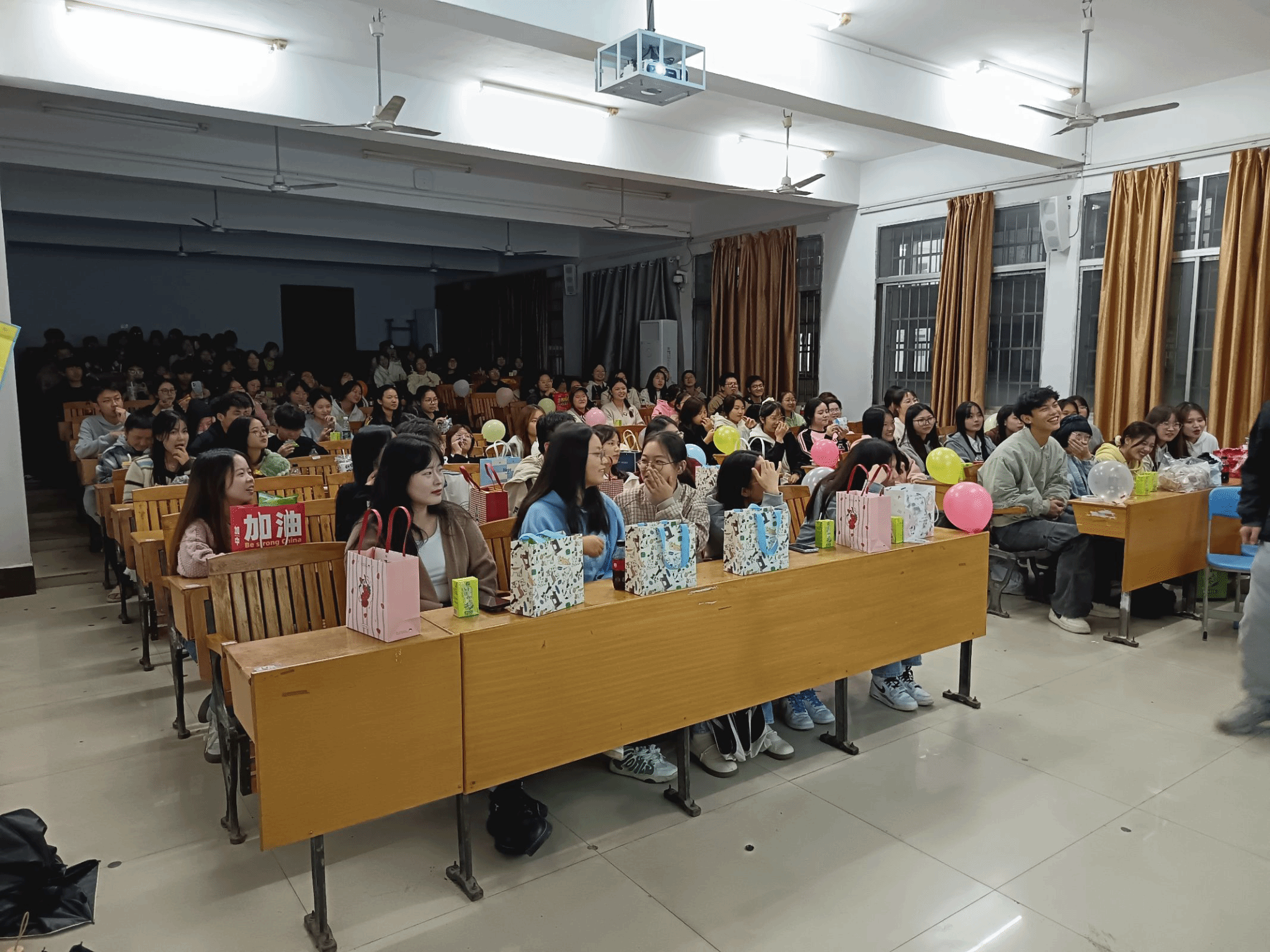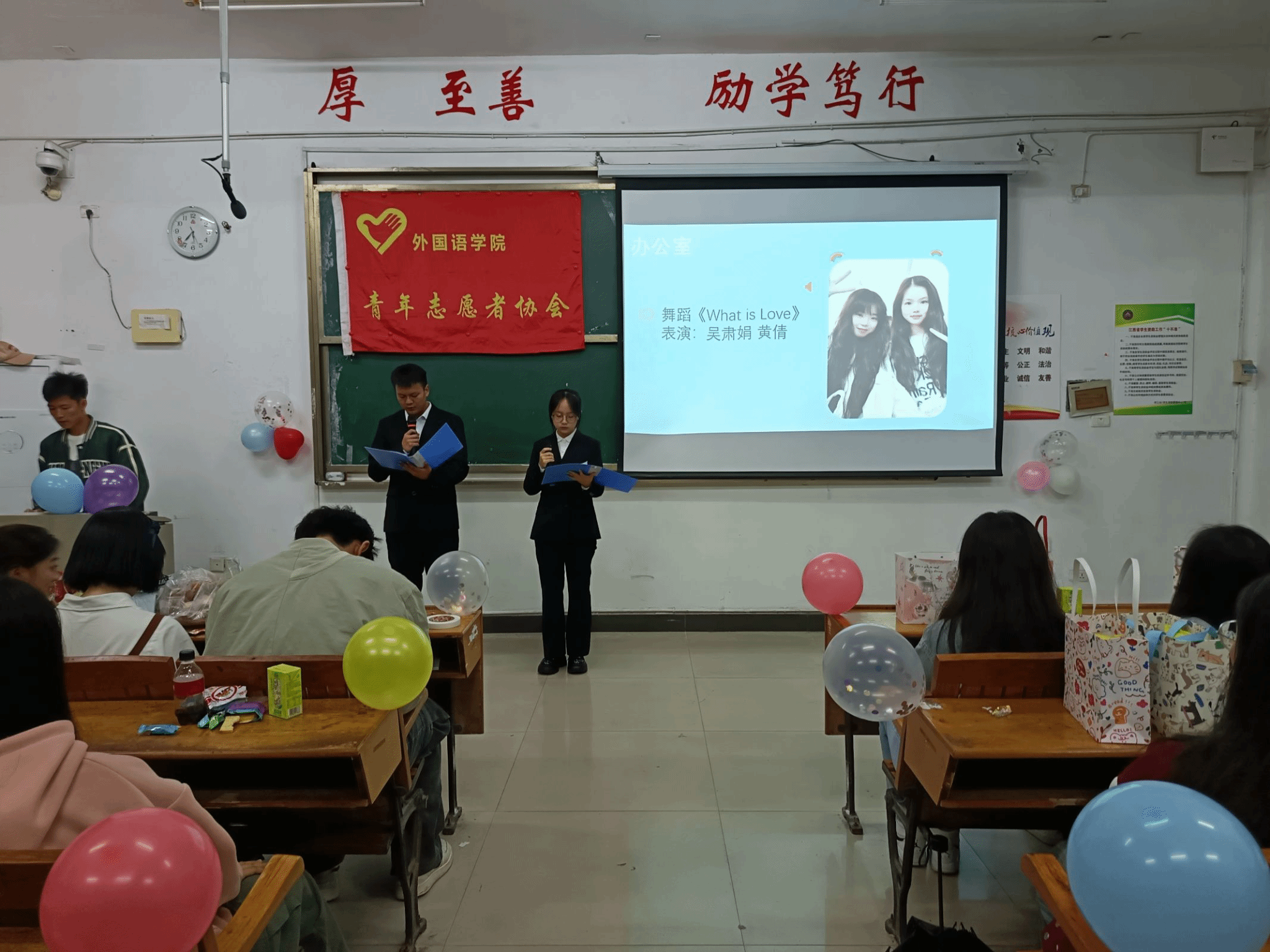 首先,主持人郑欣汝和刘胜毅宣布活动开始。在观众热烈的掌声中,办公室的小伙伴给我们呈现舞蹈《what is love》,接着是办公室的小伙伴带来的另一个节目《蒲公英的约定》,在新闻部的同学表演完小品《再看五分钟》后,进入第一轮游戏环节“抢凳子”,大家都积极参与其中,教室里弥漫着欢声笑语。游戏结束后,文宣部带来了歌曲《我还有点小糊涂》,随后网络部全体成员演唱了歌曲《开心往前飞》,紧接着人力资源部表演了小品《霸总看病》,随后便是第二轮游戏环节“各位好汉请抱拳”,小伙伴们在游戏中既收获了快乐也增进了默契。游戏结束后,由社会实践部带来小品《奇葩招聘会》,接着由社会实践部的陈雨婷演唱的歌曲《当你》,欢快的歌曲营造出温馨的氛围,小伙伴们纷纷打开手机闪光灯,随着歌声摇摆,组织部合唱的歌曲《明天会更好》也让大家沉浸其中。接下来,以一轮游戏“动作接龙”为此次表演划上圆满的句号。然后,会长助理朱嘉雨发表了讲话,他总结了此次活动的意义,并祝福22级理事会的学长学姐们在未来的道路上越走越远,也希望24级青协成员在这个大家庭中不断发现更好的自己。最后,全体beats365亚洲版官网青协成员一起合影留念。至此,本次活动圆满结束。