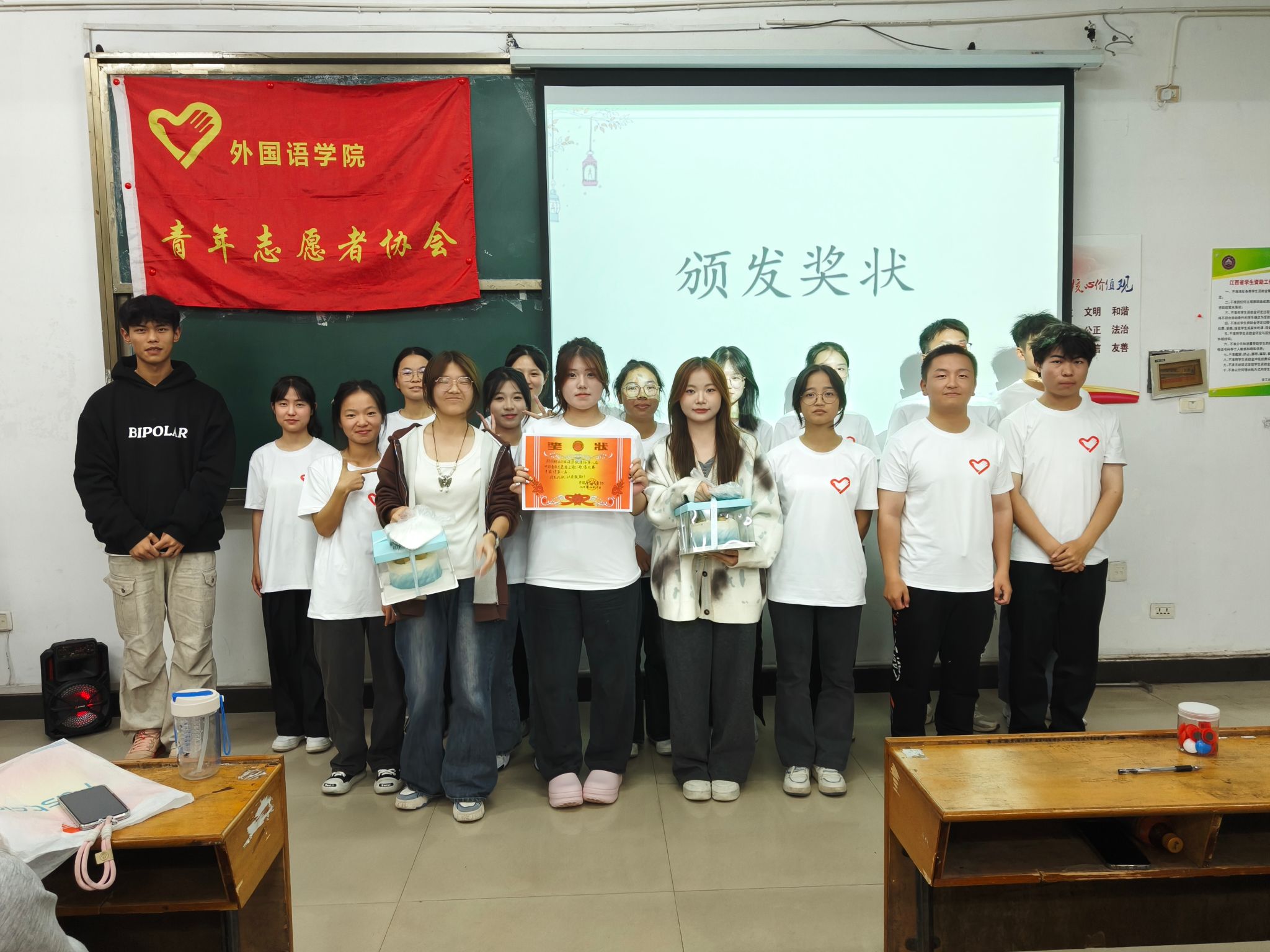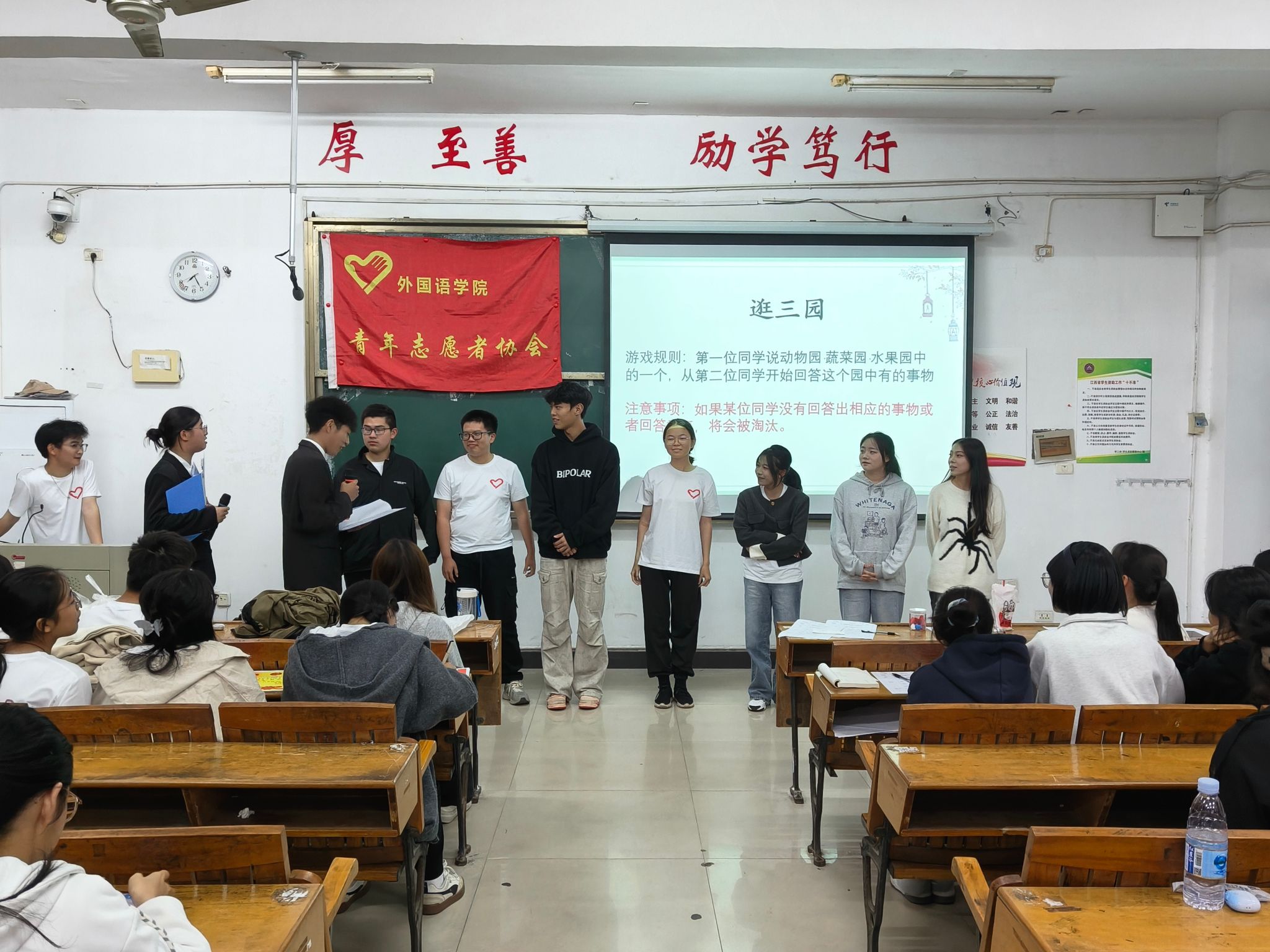 本次活动通过合唱比赛的方式来抒发24级新生小伙伴们的志愿情怀。活动前期,各部门部长带领新生小伙伴们练习歌曲排练动作。10月29日,比赛正式拉开了帷幕。活动第一项,由主持人黄惠芳和陈梓涵介绍本次活动的嘉宾并宣布本次比赛正式开始。活动第二项,各部门依次上台展示。首先是社会实践部的小伙伴热情奔放的合唱,将活动现场的氛围点燃。紧接着是文宣部的小伙伴们整齐划一的手势舞。在此之后的是组织部,他们庞大的队伍使得歌声荡气回肠,嘹亮整齐,令人惊叹。组织部结束后是新闻部,新闻部的小伙伴们别出心裁的手势舞和灵活新颖的走位获得了雷鸣般的掌声。随后出场的是网络部,热情阳光,面带微笑,渲染得观众也扬起了嘴角。紧接着的是办公室,他们迈着坚定的步伐走上合唱的舞台,歌声里透露着甘于奉献的心声。最后人资部的小伙伴们用那真挚诚恳的语气喊出了他们的口号,传达出每名青年志愿者的信念。比赛过程中还穿插了两个游戏环节,极大地活跃了现场的氛围。在前三个部门展示结束后进入第一轮游戏环节,投屏展示“逛三园”游戏规则后,台下小伙伴们跃跃欲试,迫不及待地想要参加。后三个部门表演完毕进入了第二轮游戏环节,“听歌识曲”不仅充分地体现了大家机敏过人的反应能力,更是让大家发现了人群中隐藏的音乐爱好者。第三项,由会长助理朱嘉雨发表讲话,会助对各个部门成员比赛过程中的精彩表演予以了充分的肯定,也对幕后紧张有序的排练表示了由衷的认可,同时提出了对于外院青协的美好愿景。第四项,由主持人宣布比赛结果,新闻部获得第一名,文宣部获得第二名,组织部获得第三名。第五项,由会助朱嘉雨为三个获奖部门颁发奖状奖品并合影留念。至此,本次活动圆满结束。